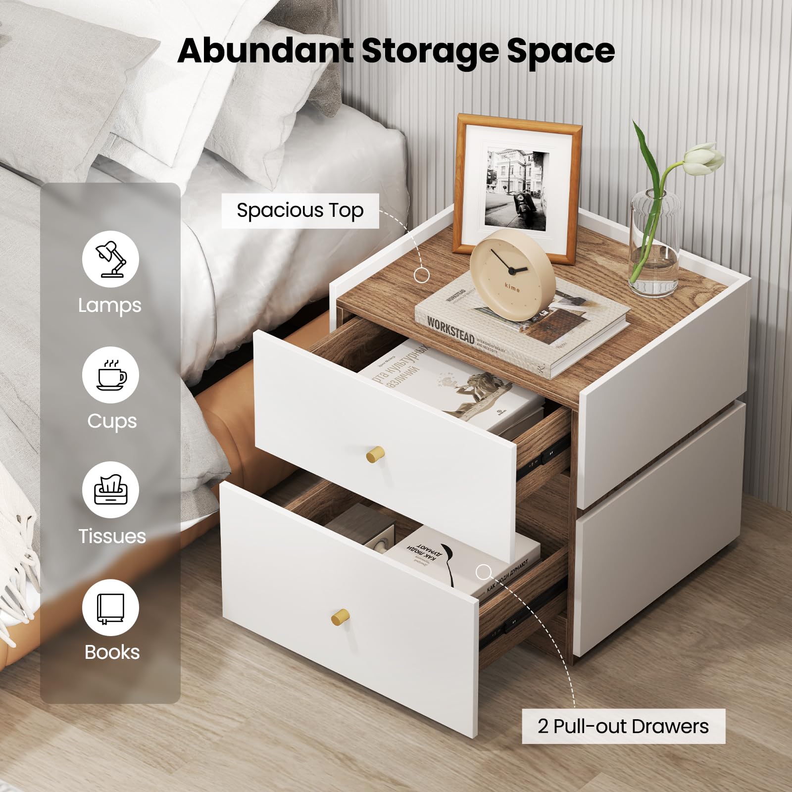 Organize with Ease: Featuring 2 slide-out drawers, this bedside table offers ample space to keep your essentials organized and out of sight. Besides, the top area with edge protection design provides a secure and accessible surface for daily items.