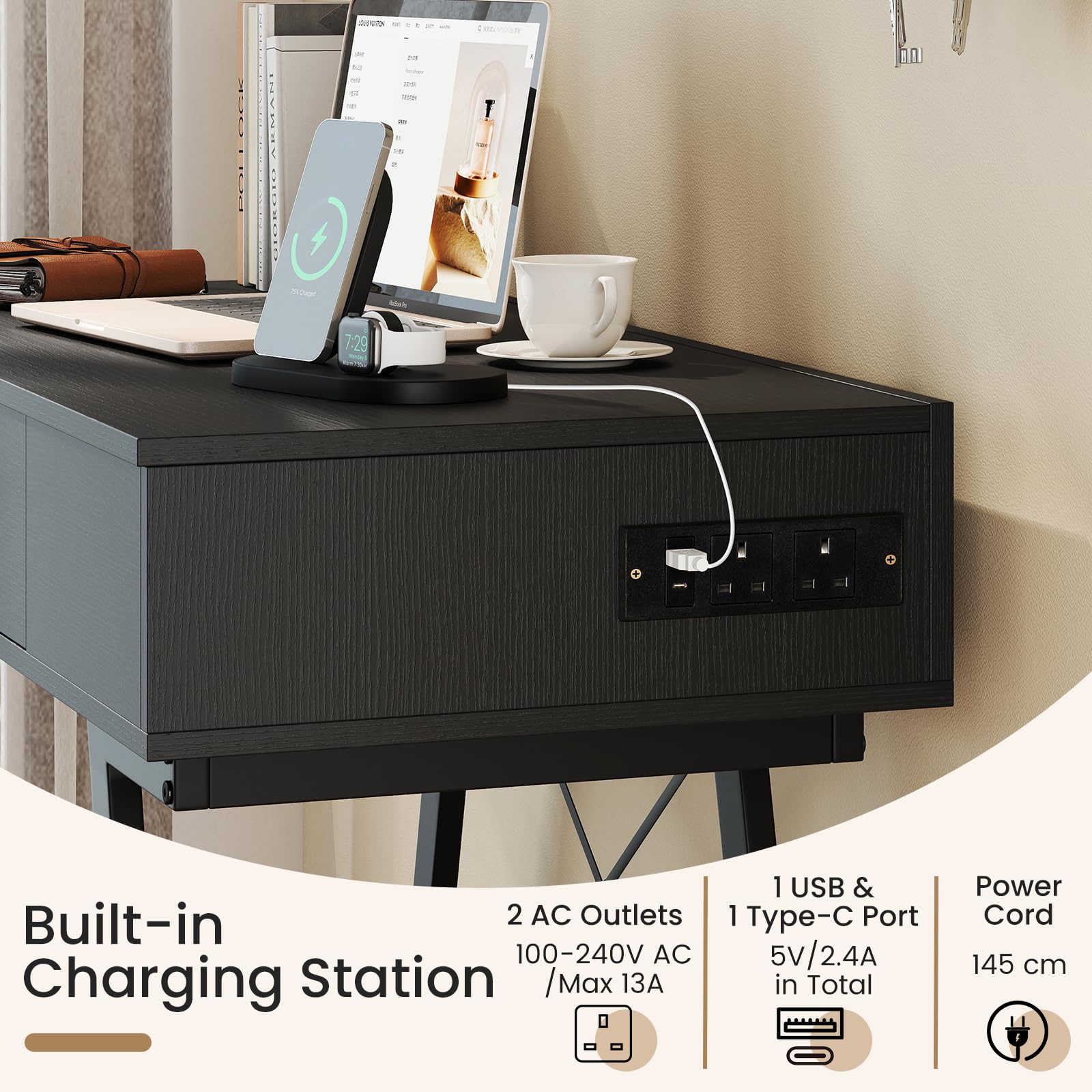 Built-in Charging Station: The makeup desk includes a charging station with 2 AC outlets, 1 USB port, and 1 Type-C port for powering your laptop, phone, tablet, or hairdryer. In addition, an integrated cable management hole keeps wires neatly tucked away.