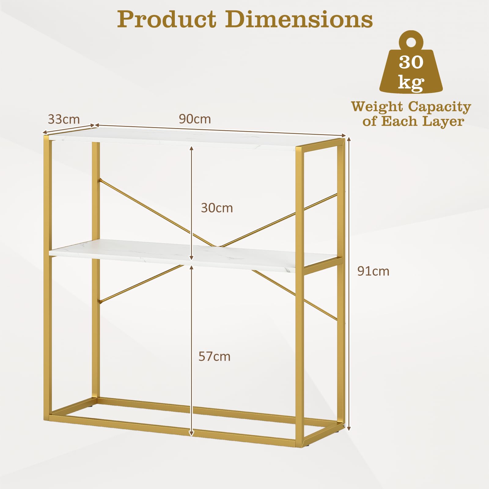 2-Tier Entryway Table with Marble Textured Open Shelves and Metal Frame