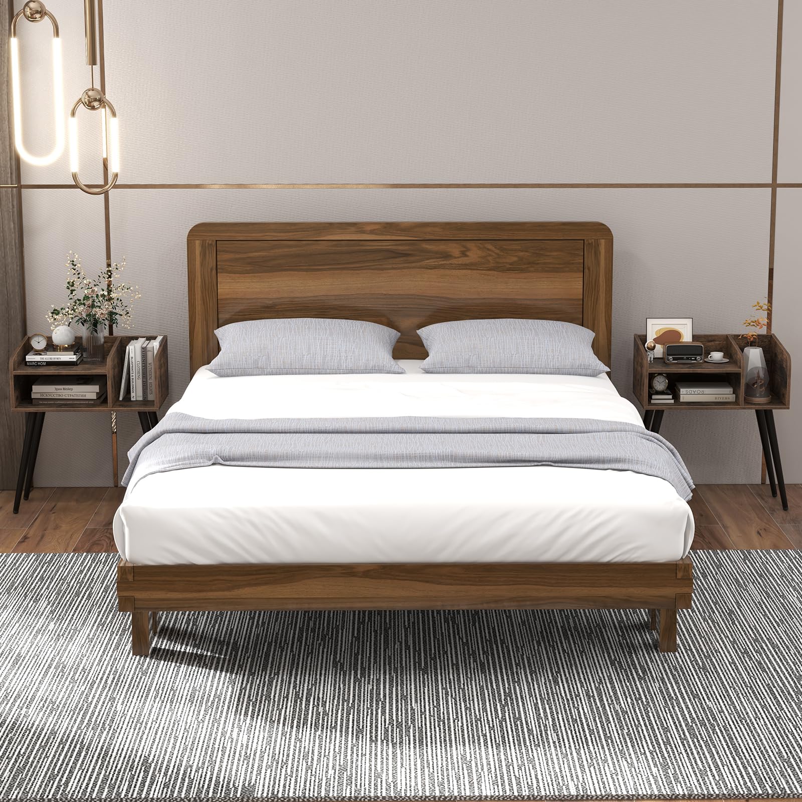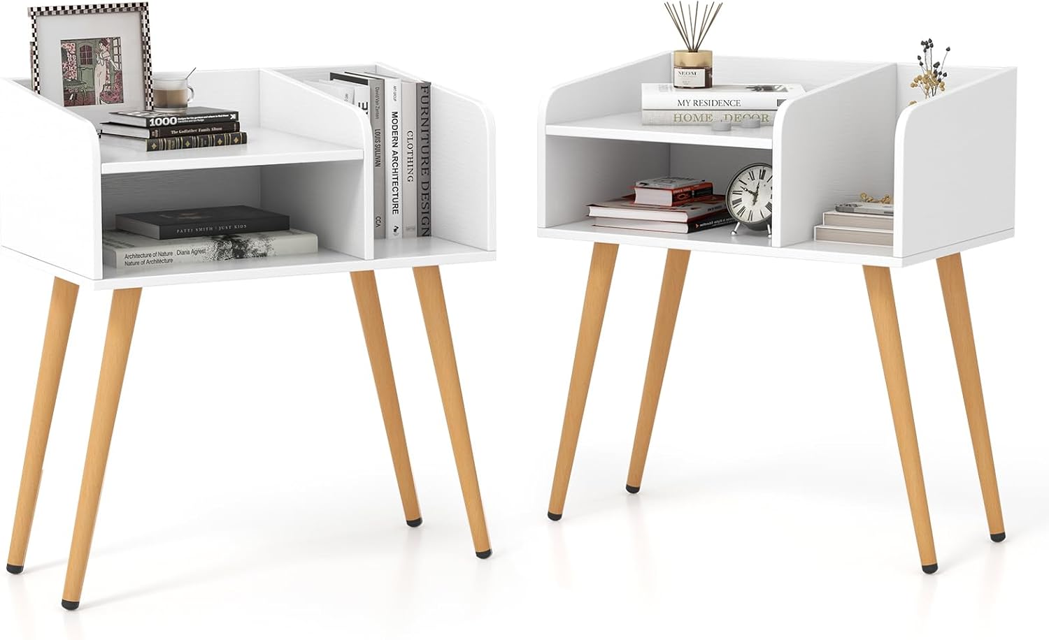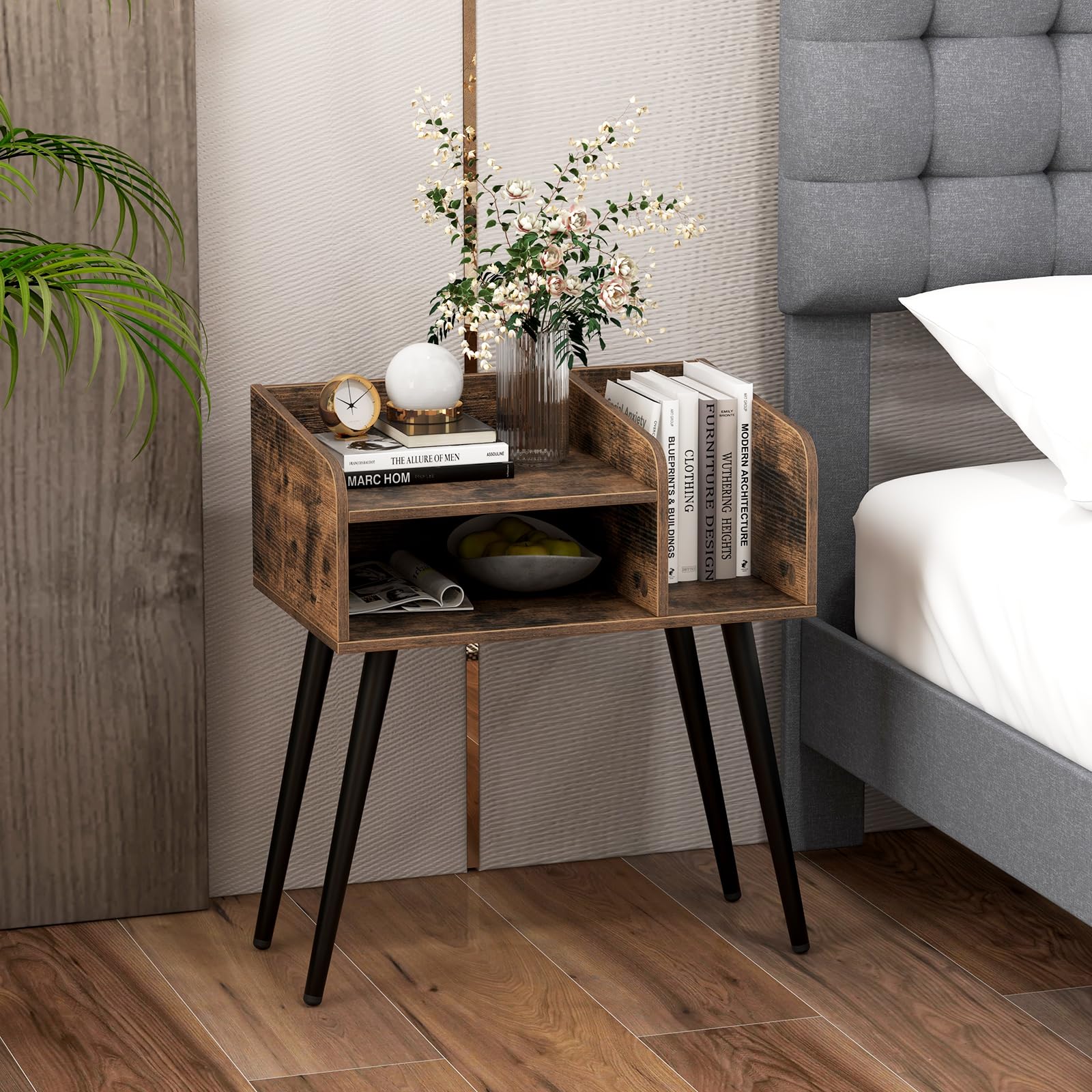 2-Tier Mid Century Modern Nightstand with Open Shelves
