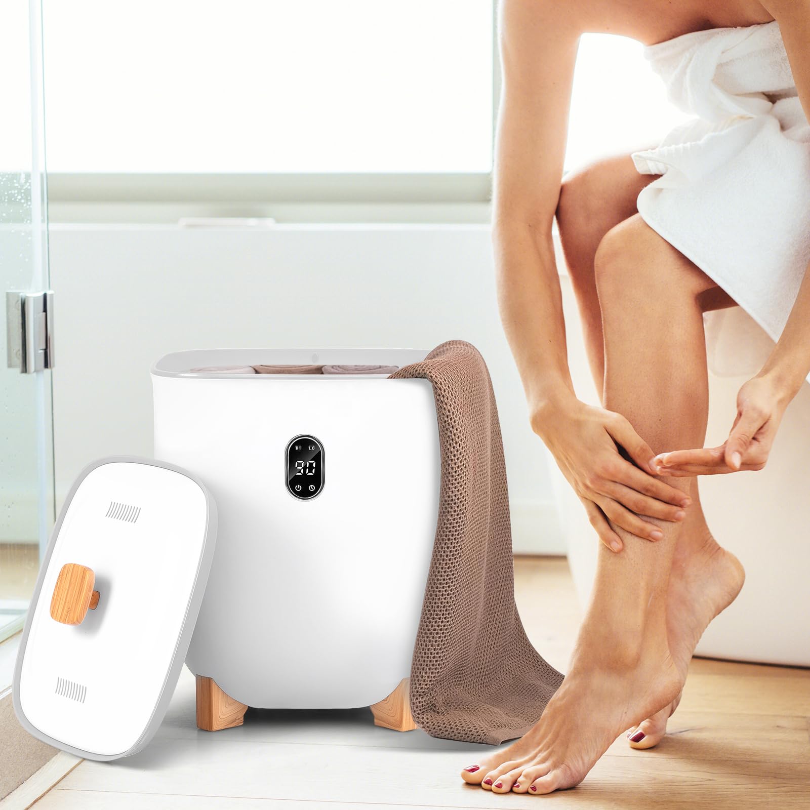 Discover the ultimate in home comfort with our 25/40L towel warmer bucket—big enough for two to share the toasty warmth of oversized towels! Our advanced heating tech delivers consistent warmth, eliminating any cold spots. Control your spa-like experience with ease using the smart LCD panel, setting your perfect temperature and timer. Safety is a breeze with our automatic shut-off and over-heat protection. Plus, indulge in the aromatic bliss of our included scent trays, taking your relaxation to the next level. Transform your bath time today!