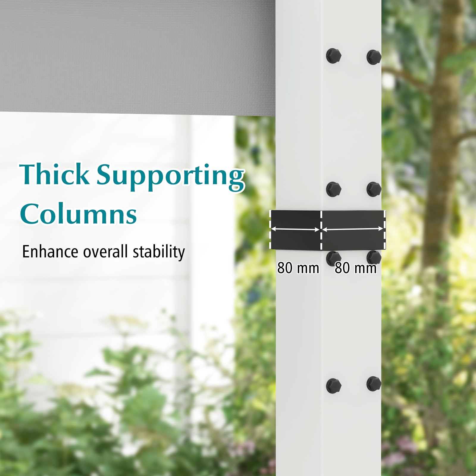 Supported by powder-coated aluminum poles, not easy to rust, peel, or chip