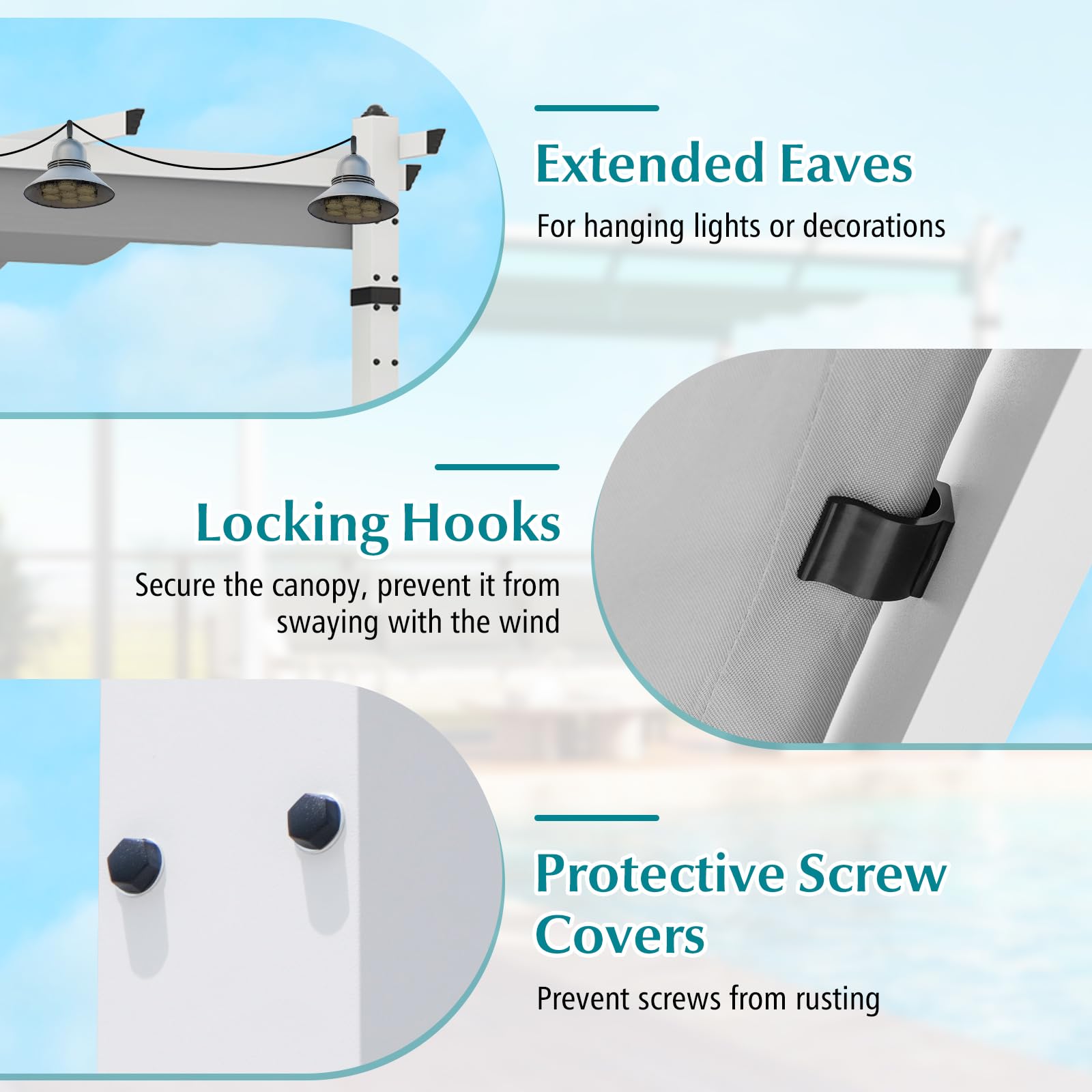 Comes with extended eaves, suitable for hanging lights and decorations