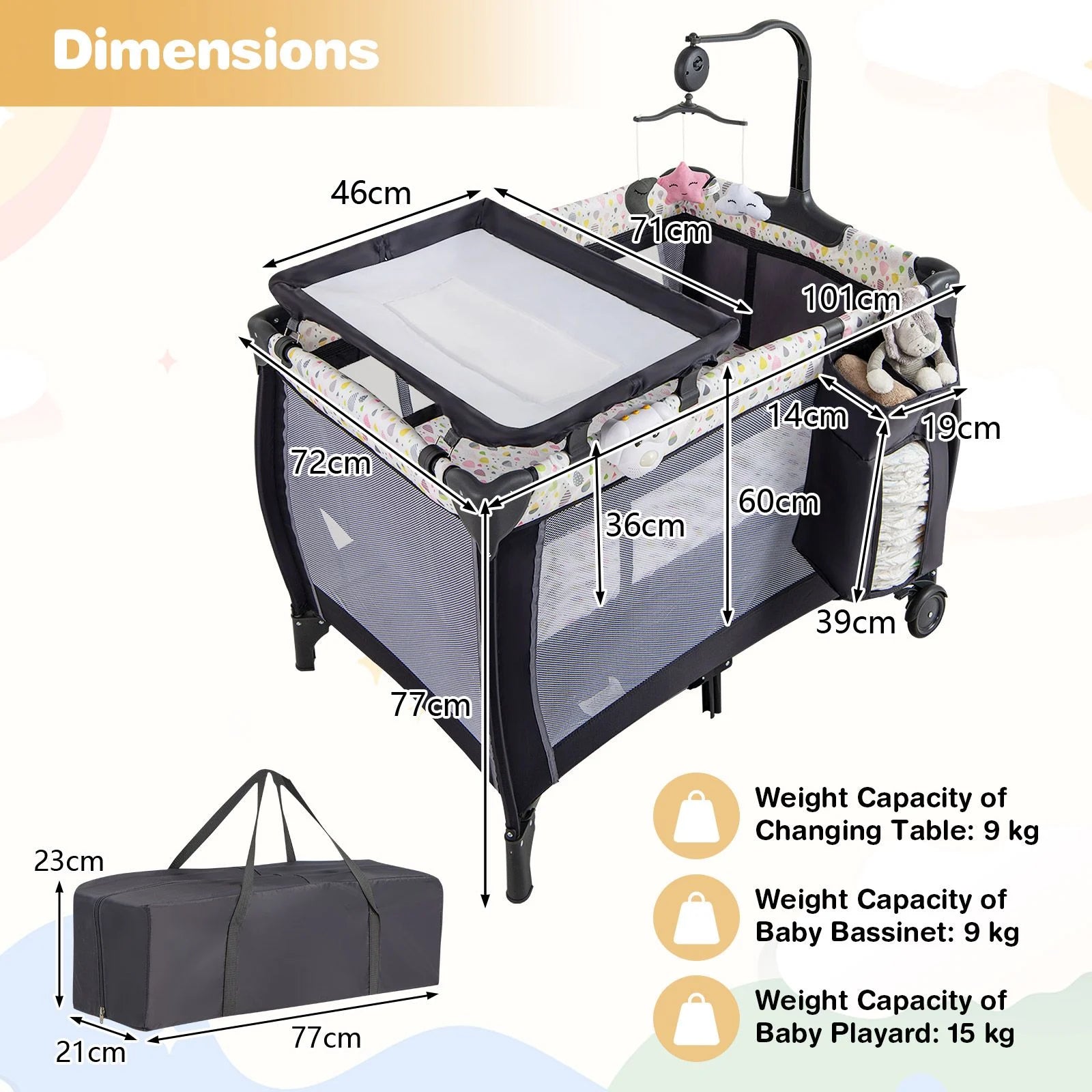 - Weight Capacity of Changing Table: 9 kg