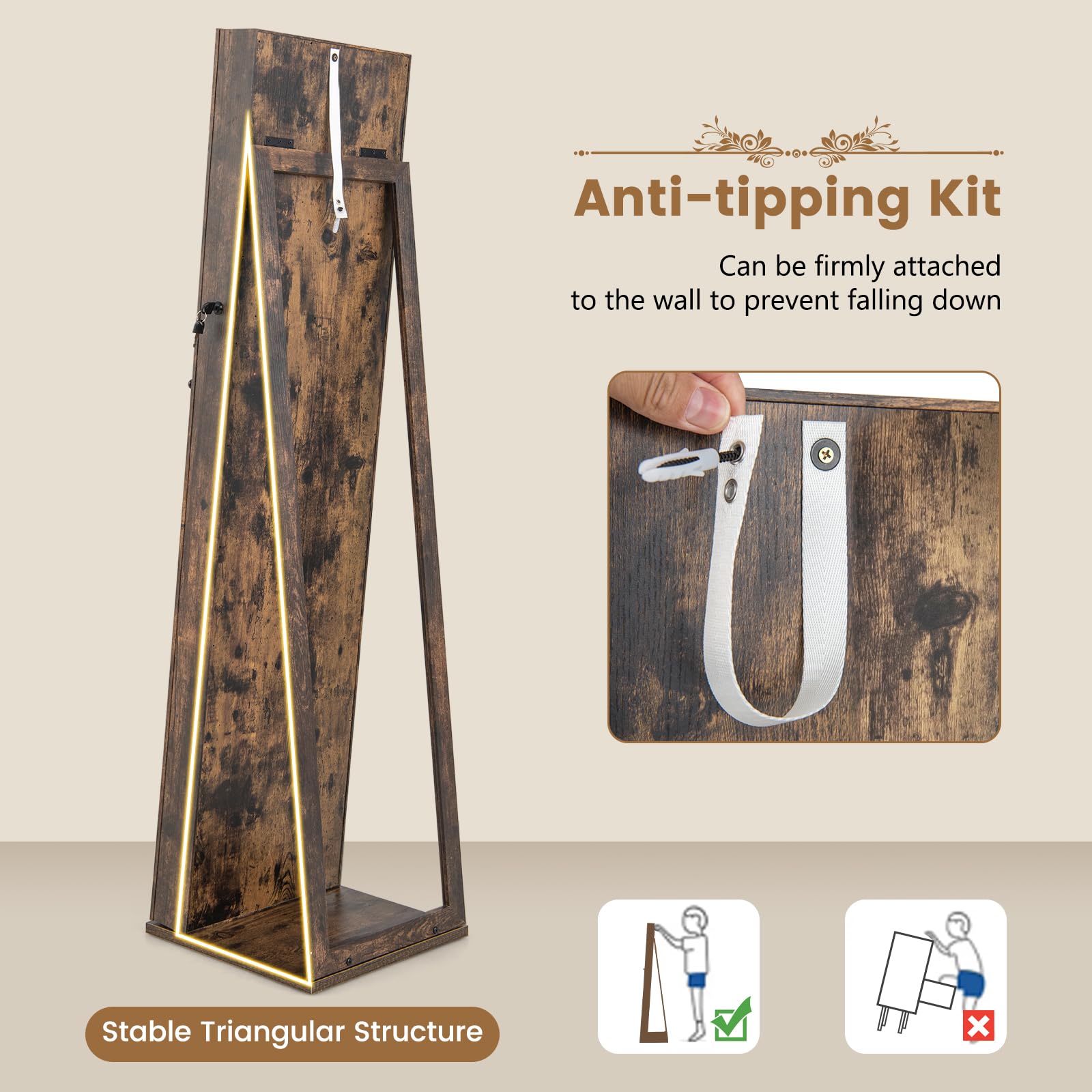 Full Size Floor Mirror: 28x146cm mirror with ultra-high process to create smooth mirror surface and allows you to view your entire outfit at a glance. At the same time, it also has a built-in mirror to make you dress easily or aid in putting on earrings and necklaces.