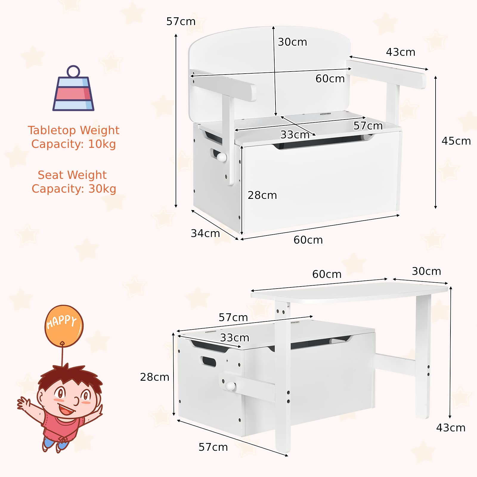 Tired of a toy covered floor? Our kids convertible storage bench is a perfect companion for your growing kids. And the large toy storage space helps to keep your home tidy and clean. This versatile toy chest with 3-in-1 design can be easily converted from a bench to a desk & chair set. In addition, the safety pneumatic rod allows the storage box to open slowly and prevents the lid from shutting suddenly to avoid injury. Besides, the high quality material is stable and can be used for a long time.
