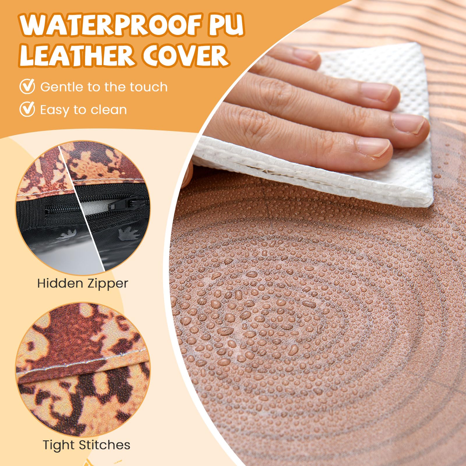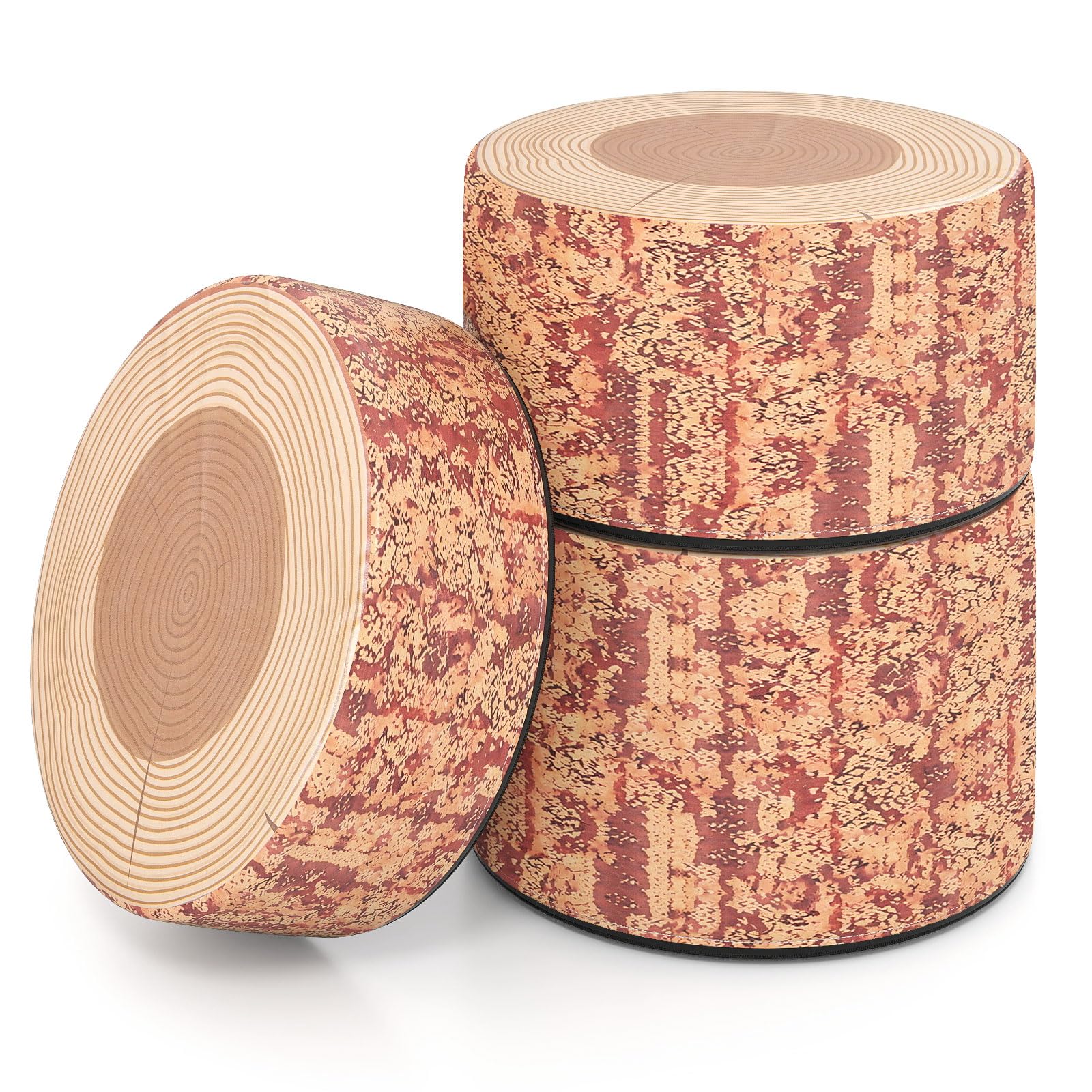 Waterproof PU Leather Cover: The premium PU leather covers of these nature-themed ottomans are gentle to the touch and easy to clean. Designed for convenience and durability, each stump stool features a hidden zipper and reinforced tight stitches.