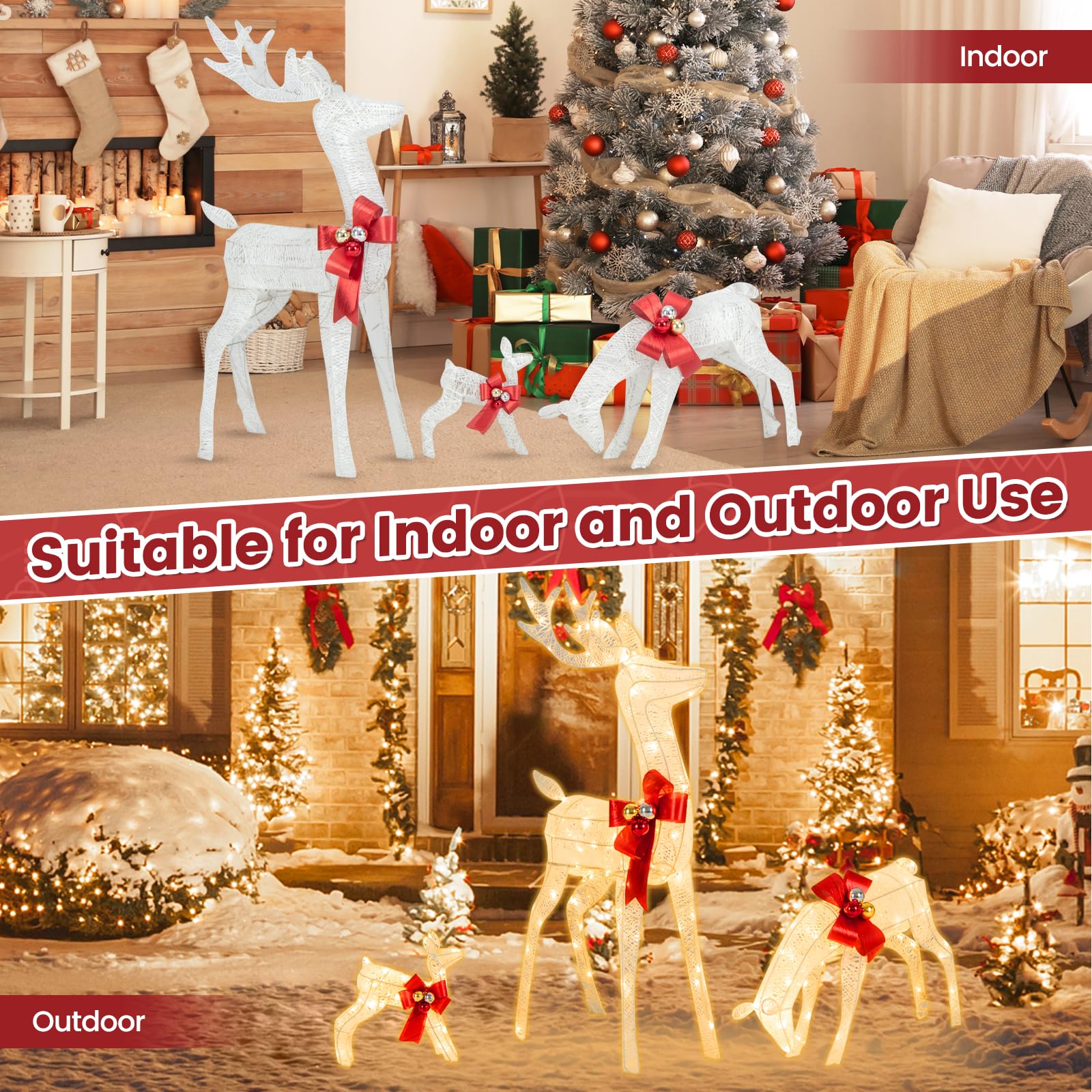 Indoor and Outdoor Xmas Decoration: This lighted deer family set is an eye-catching Christmas decoration in your yard, porch, patio or lawn. Besides, it is an ideal Christmas gift for your friends and family. Buck Size: 66 x 25 x 116 cm(L x W x H), Doe Size: 71 x 16 x 42 cm(L x W x H), Fawn Size: 29 x 10 x 30 cm(L x W x H)