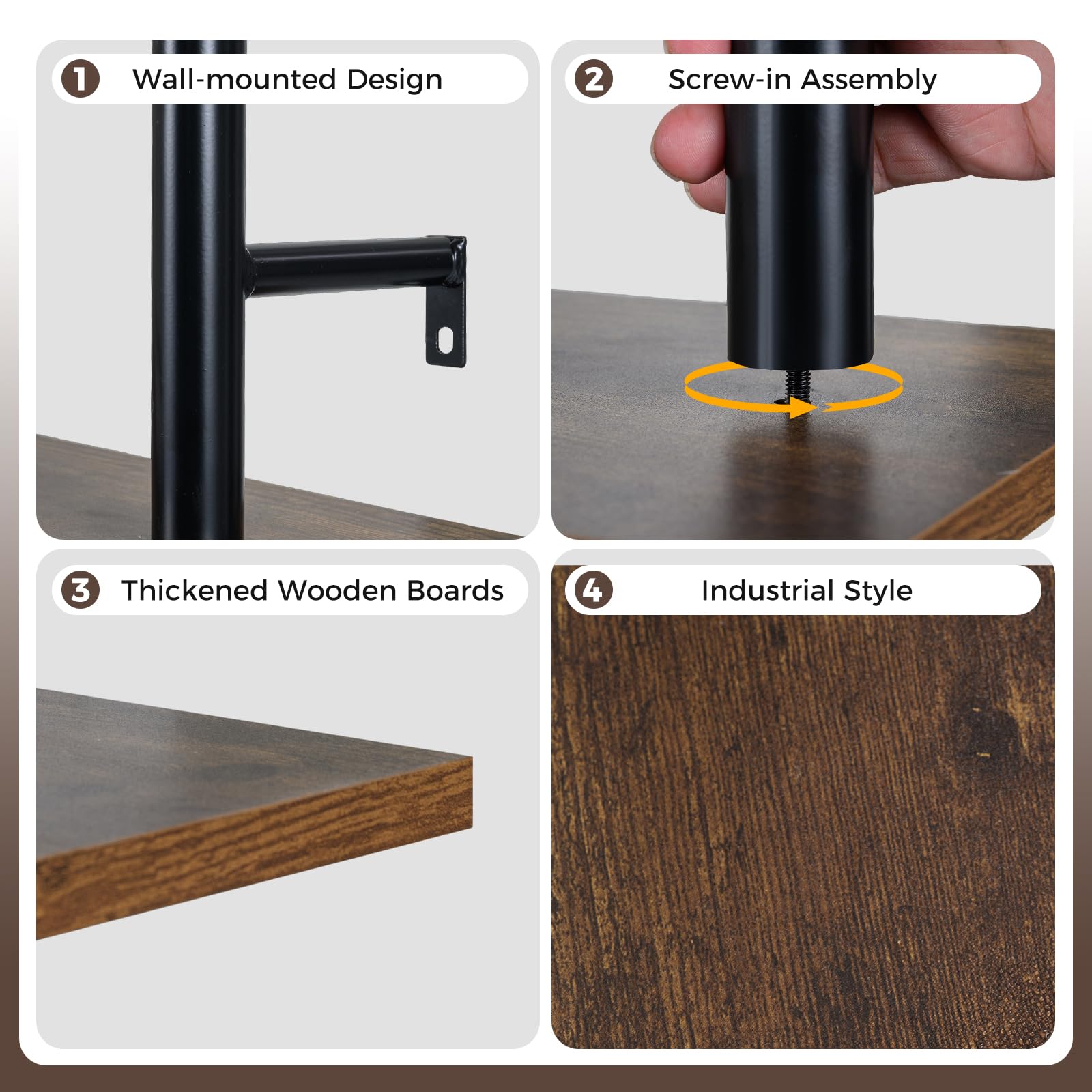 Space-Saving Wall Mount: The pipe shelves are designed for wall mounting, maximizing floor space and fitting seamlessly into your kitchen, bathroom, bedroom, living room or home office.