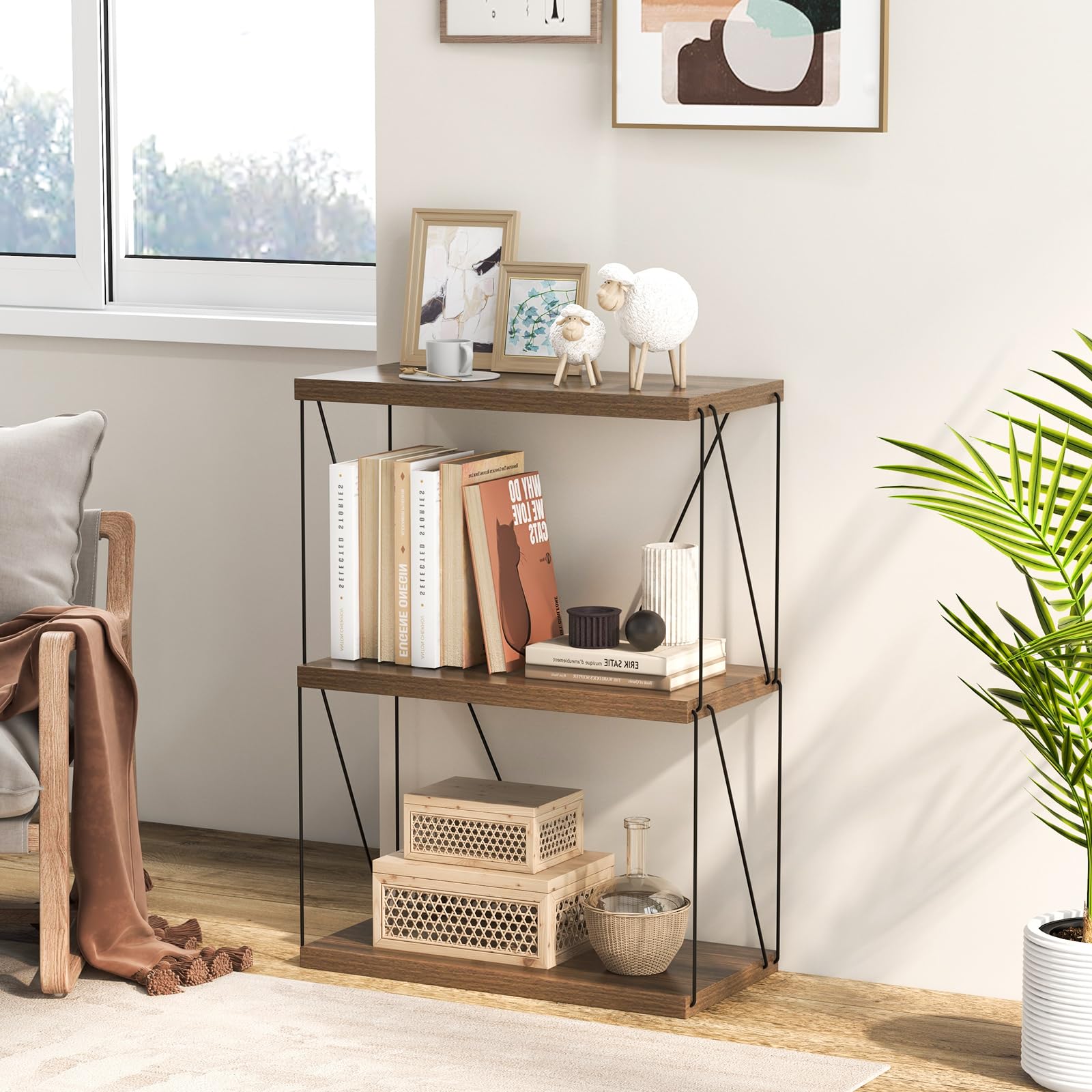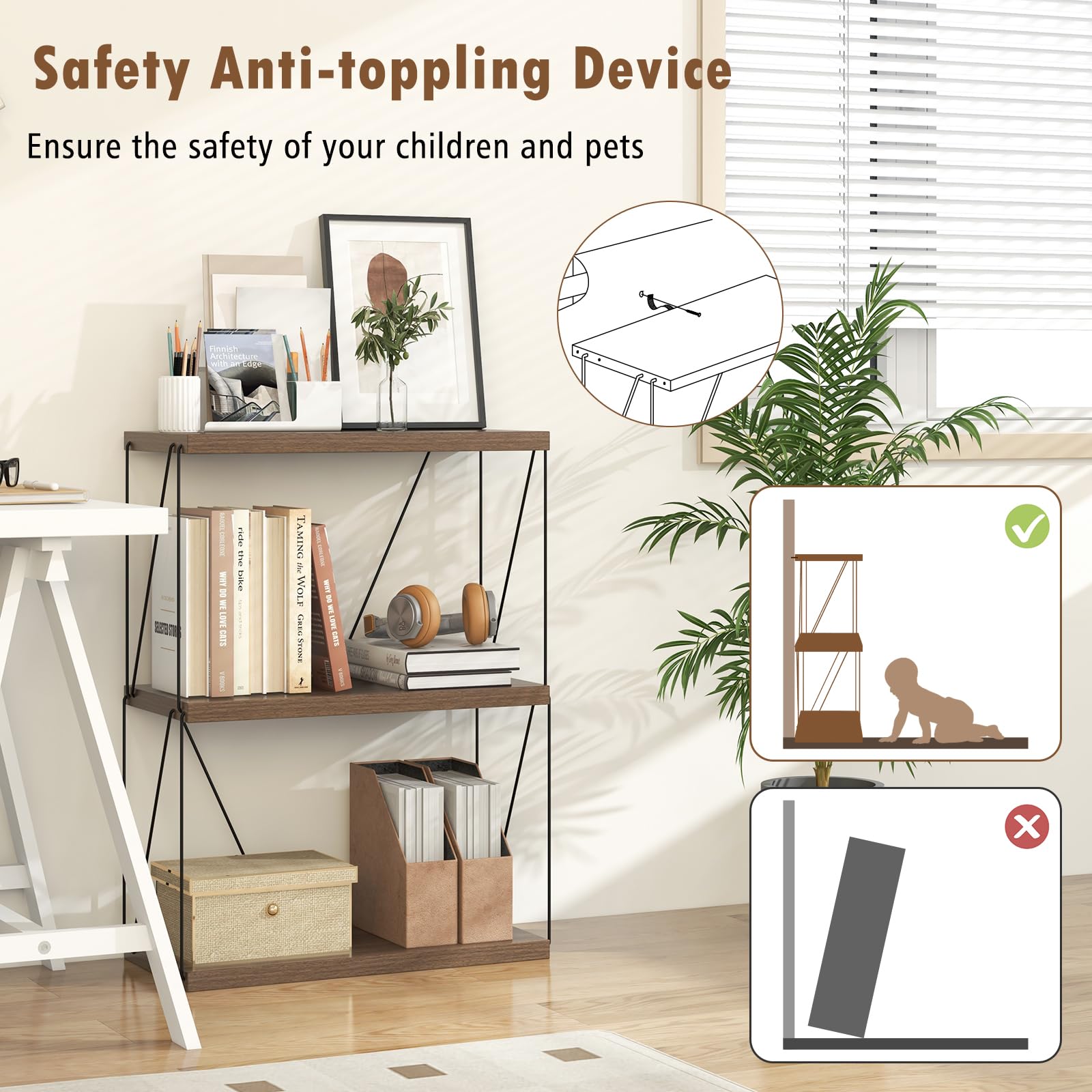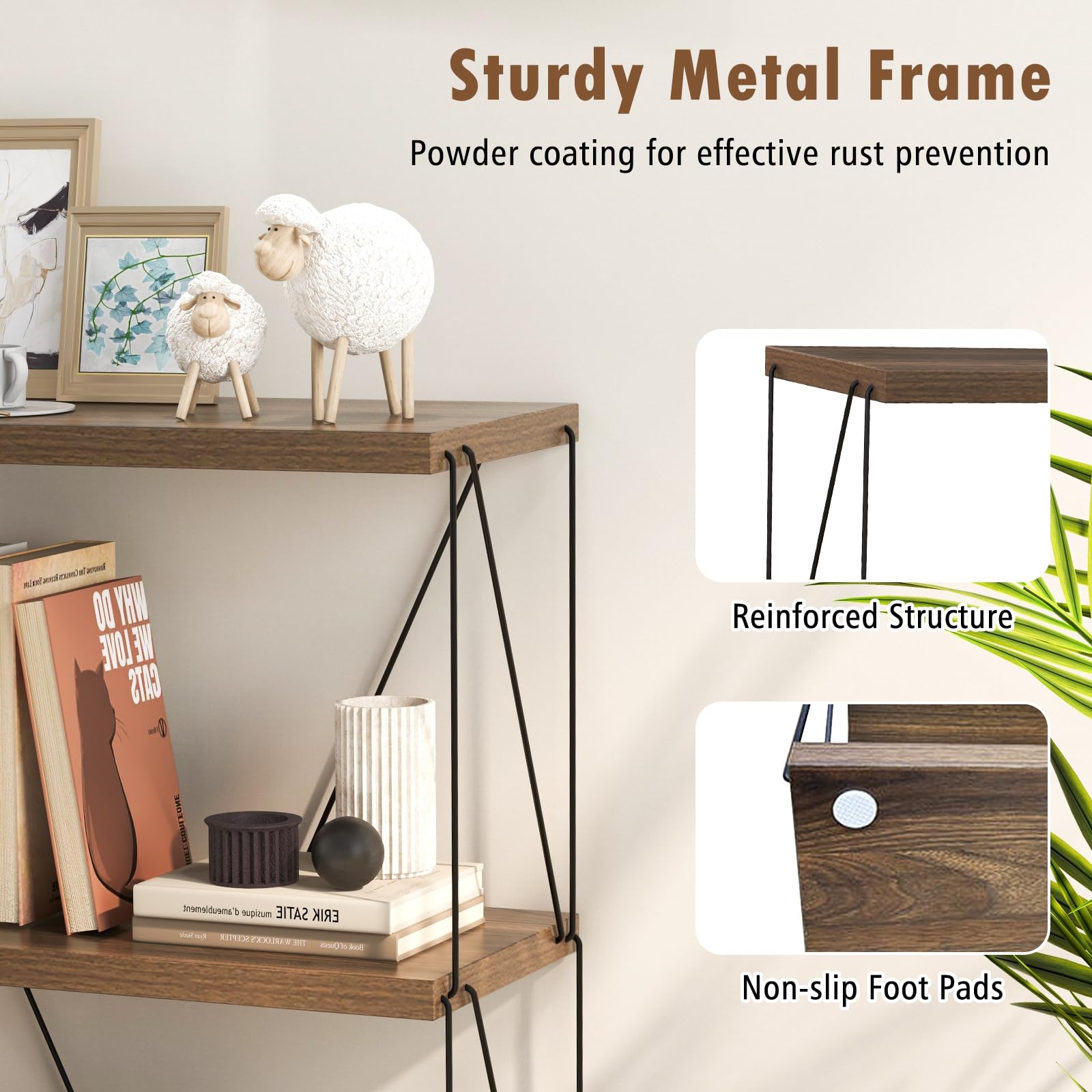 Sleek Industrial Aesthetic: Elevate your room with industrial bookcase, seamlessly blending with any interior theme. The clean lines and wood grain finish invite a retro style to your environment, making this the ideal showcase for your books, crafts, photos, or plants.