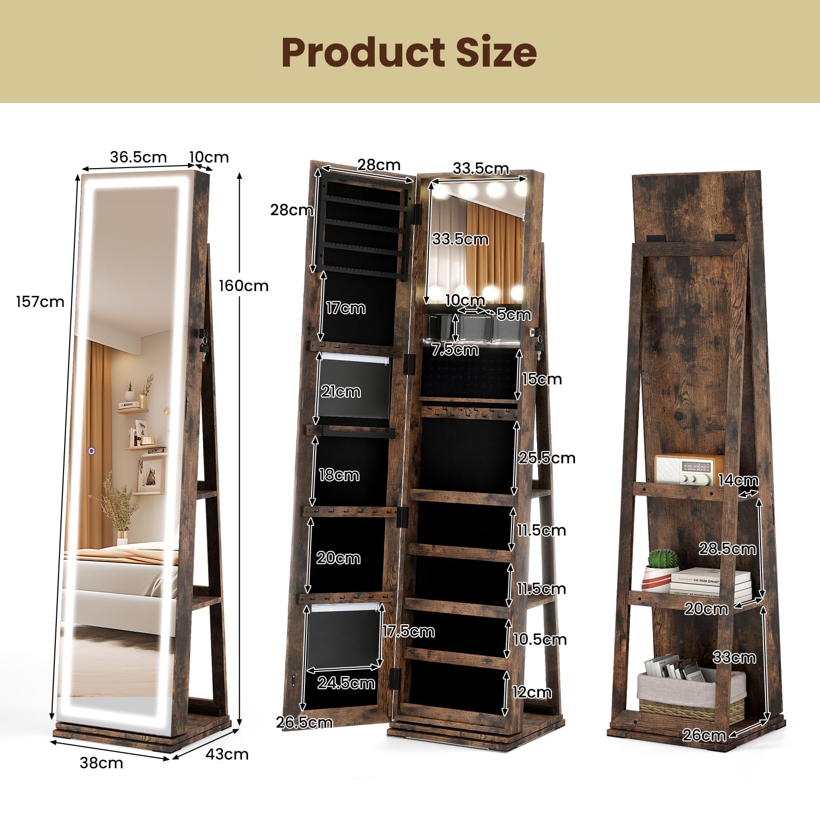 - Product Size: 43 x 38 x 160 cm (L x W x H)