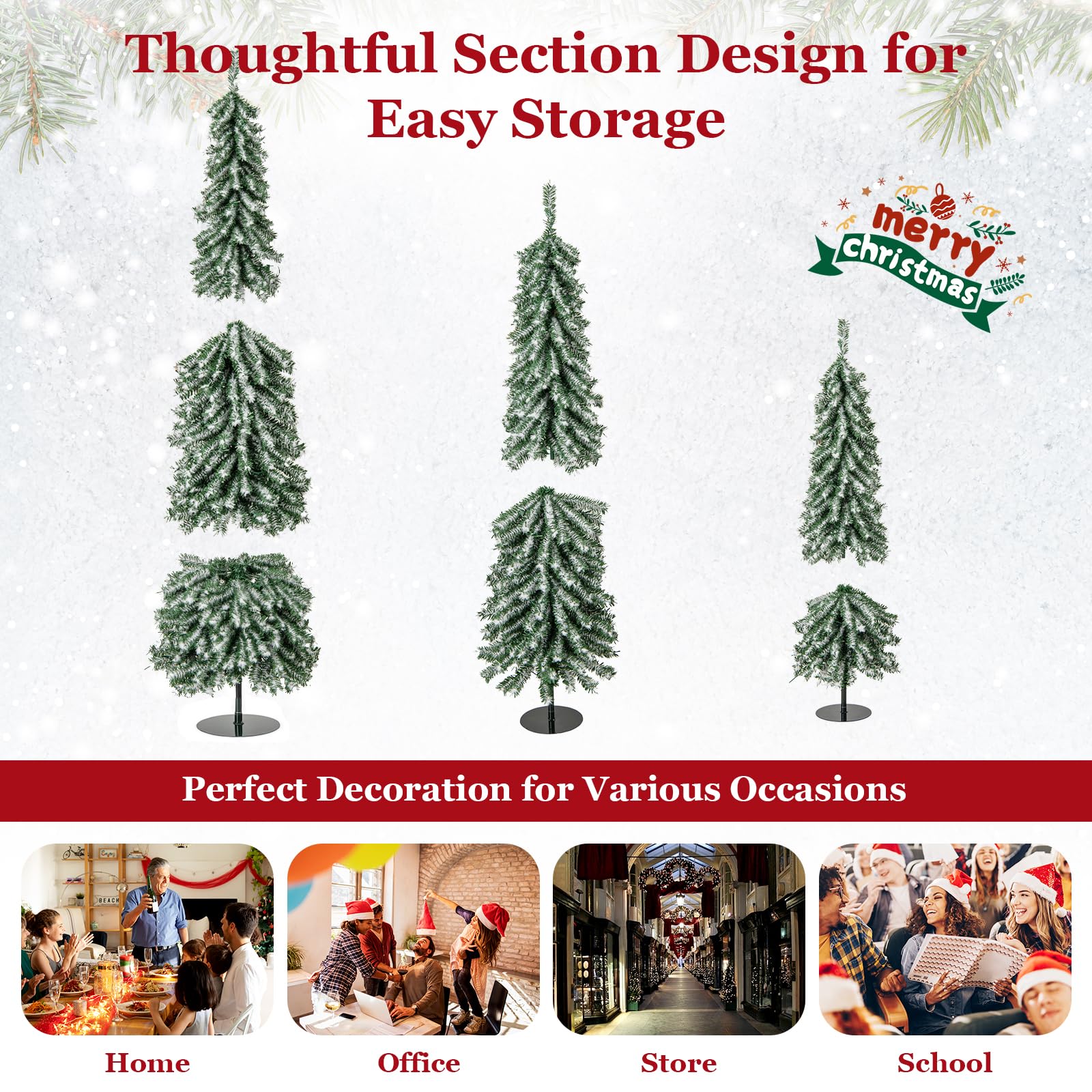 Slim 3 PCS Holiday Tree: Equipped with a 4/5/6ft Christmas tree, the holiday decoration set allows you to freely arrange and decorate them. Also, the faux Christmas tree set of 3 comes in a slim shape, making it fit well in any spaces, including living room, office, doorway.