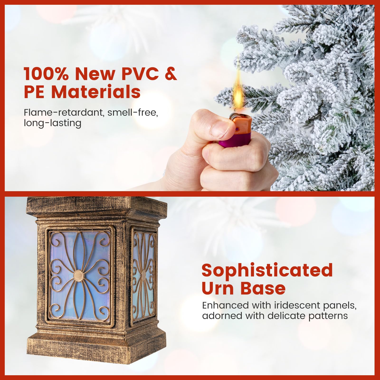 Captivating and Realistic Appearance: The 4 ft artificial Christmas tree features 180 lush snow-flocked branch tips for a winter wonderland look, beautifully complemented by an elegant antique flowerpot base that enhances both style and stability.