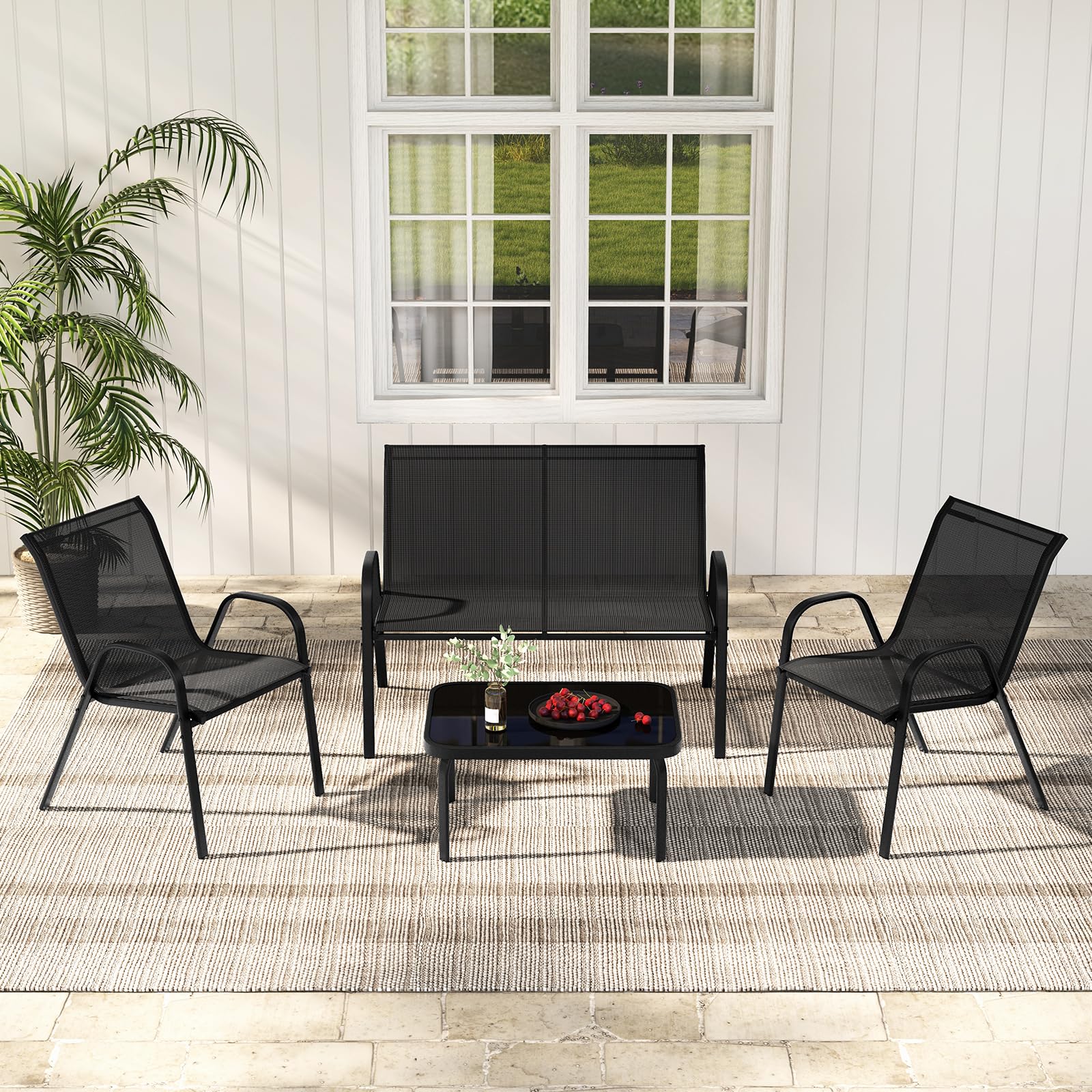 4-piece garden furniture set, metal frame patio conversation set with loveseat