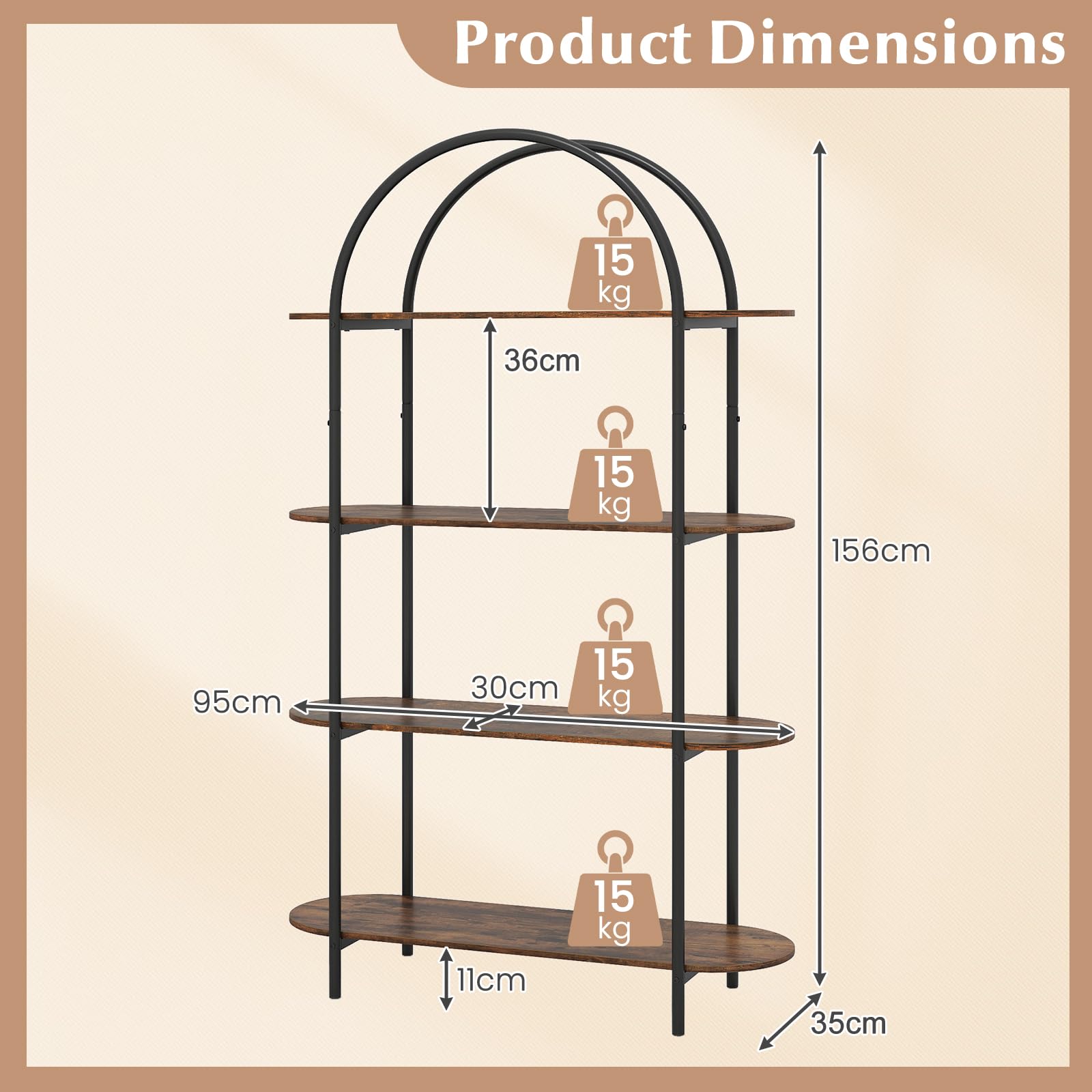 4-Tier Arched Bookshelf, 156cm Metal Frame Bookcase Shelving Unit