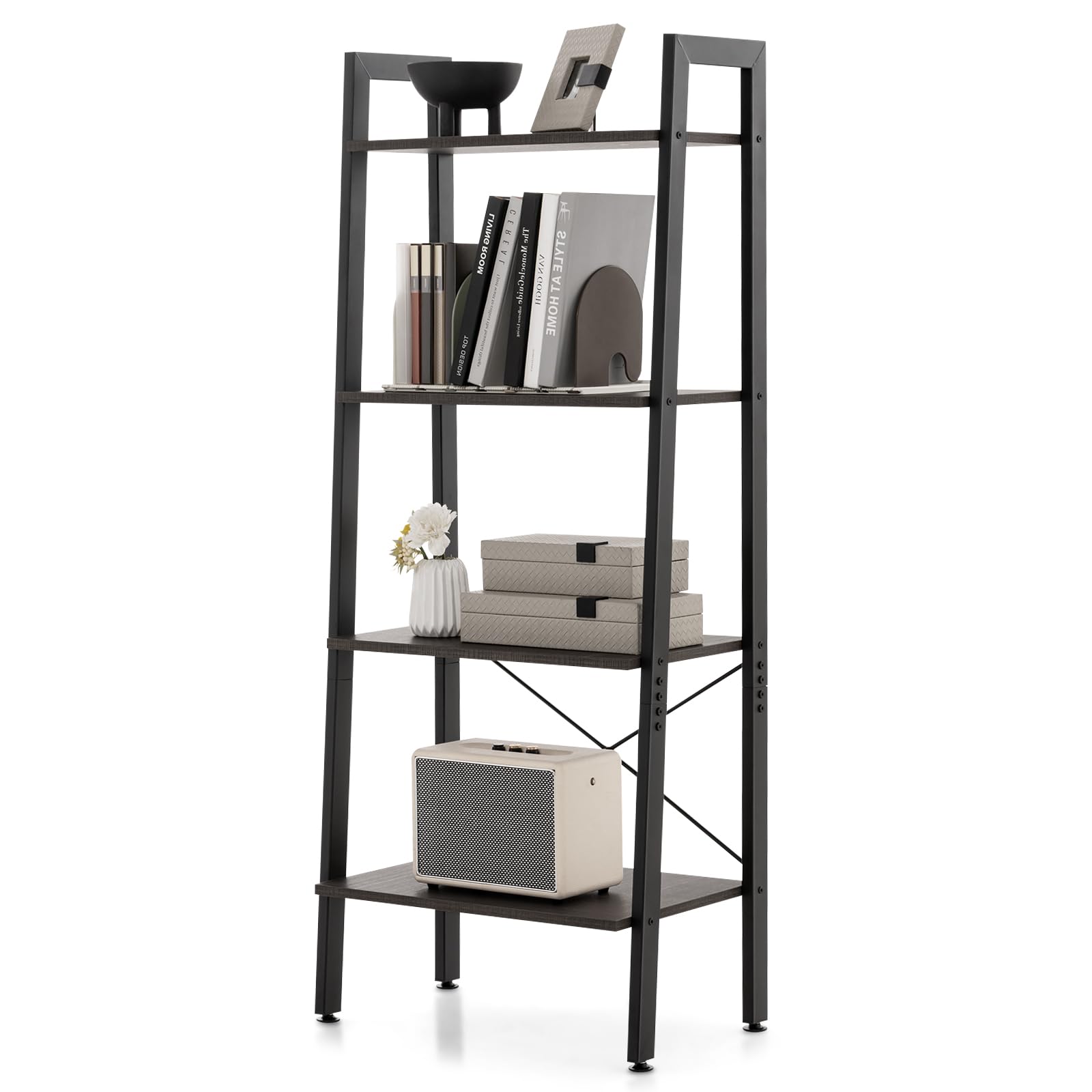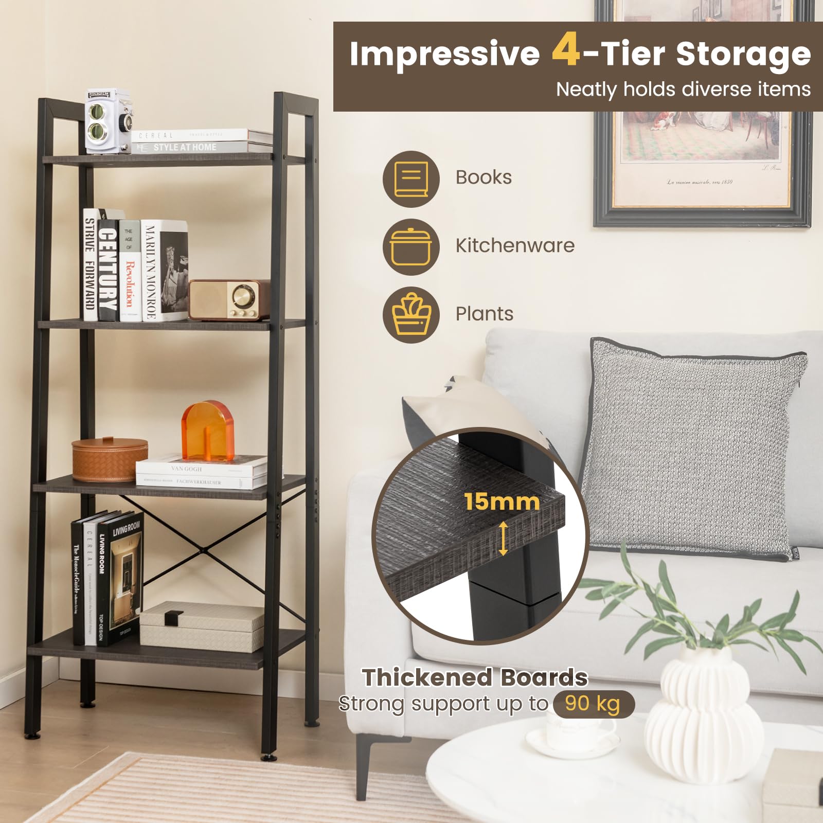 4-Tier Storage and Industrial Style: Fully utilizing 4 wide shelves, you will get ample sorted space to store plenty of items, like books, kitchenware, plants, etc. By the way, since the bookshelf cleverly combines an industrial design, it can also work as a decoration in your home or office.