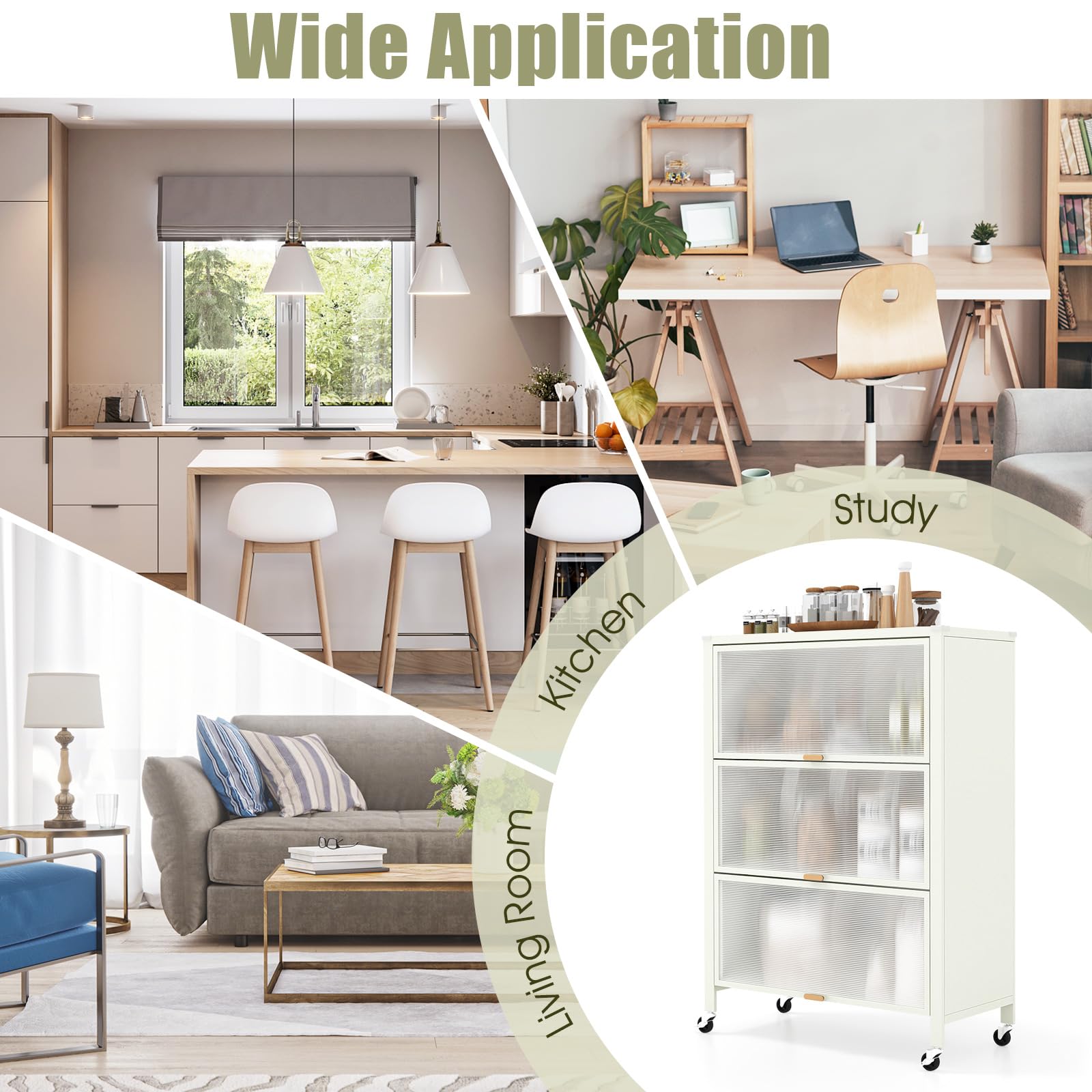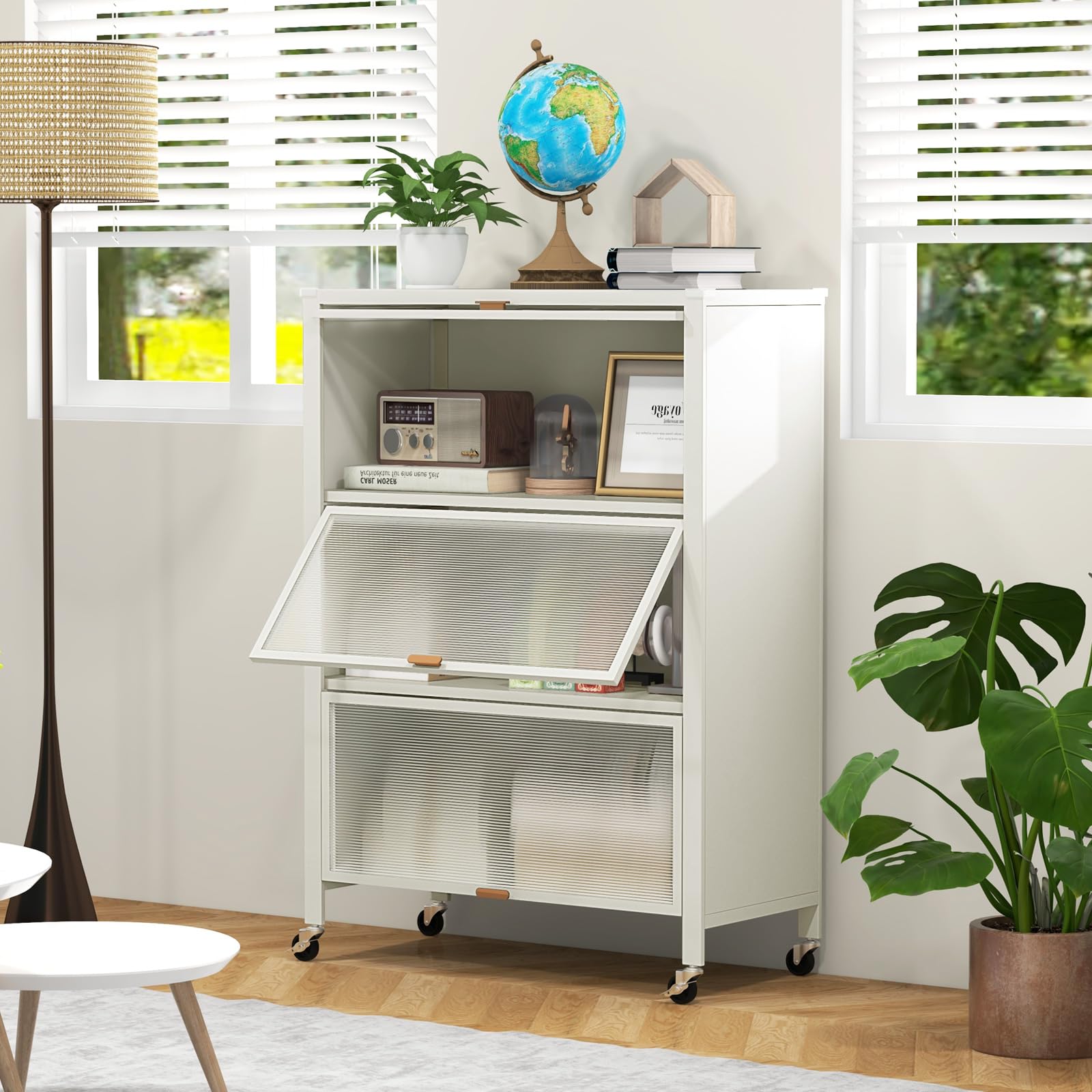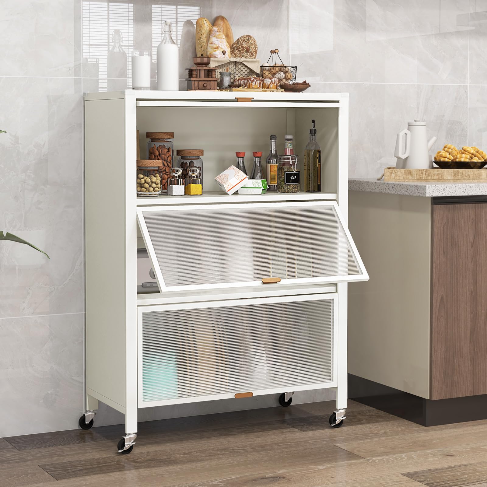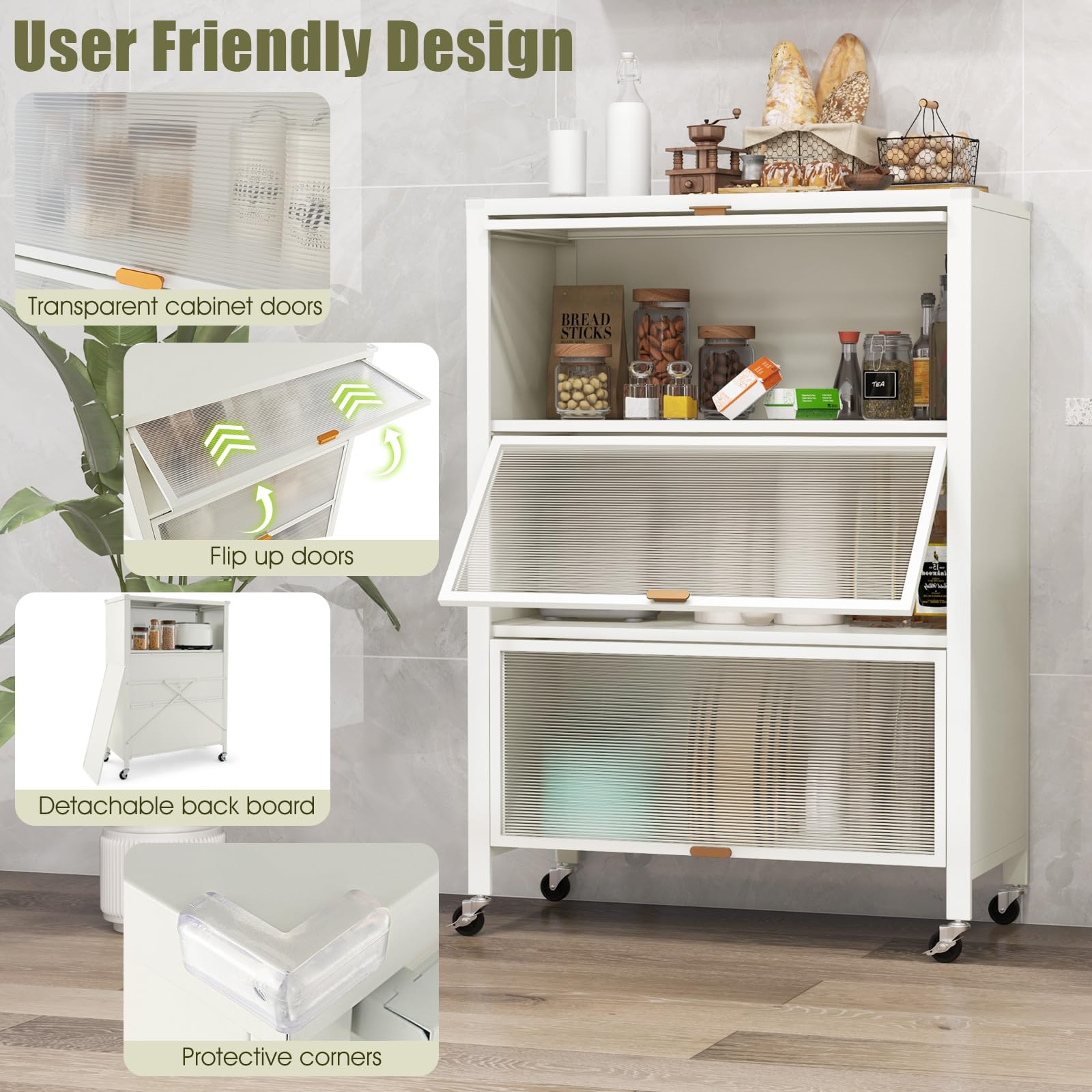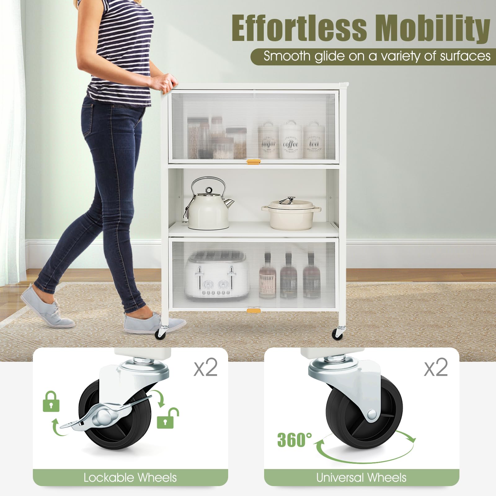 4-tier kitchen bakers rack with flip doors on lockable universal wheels