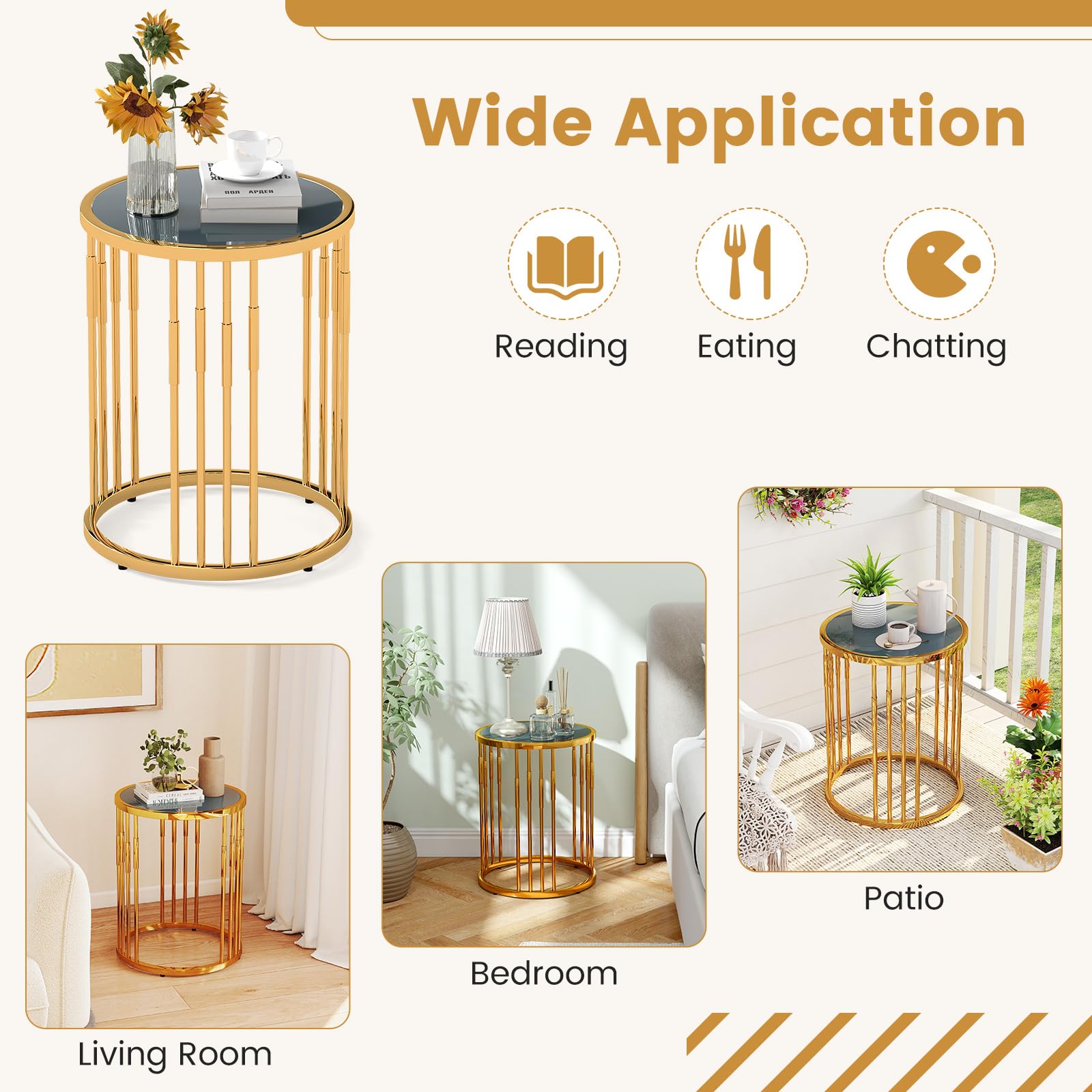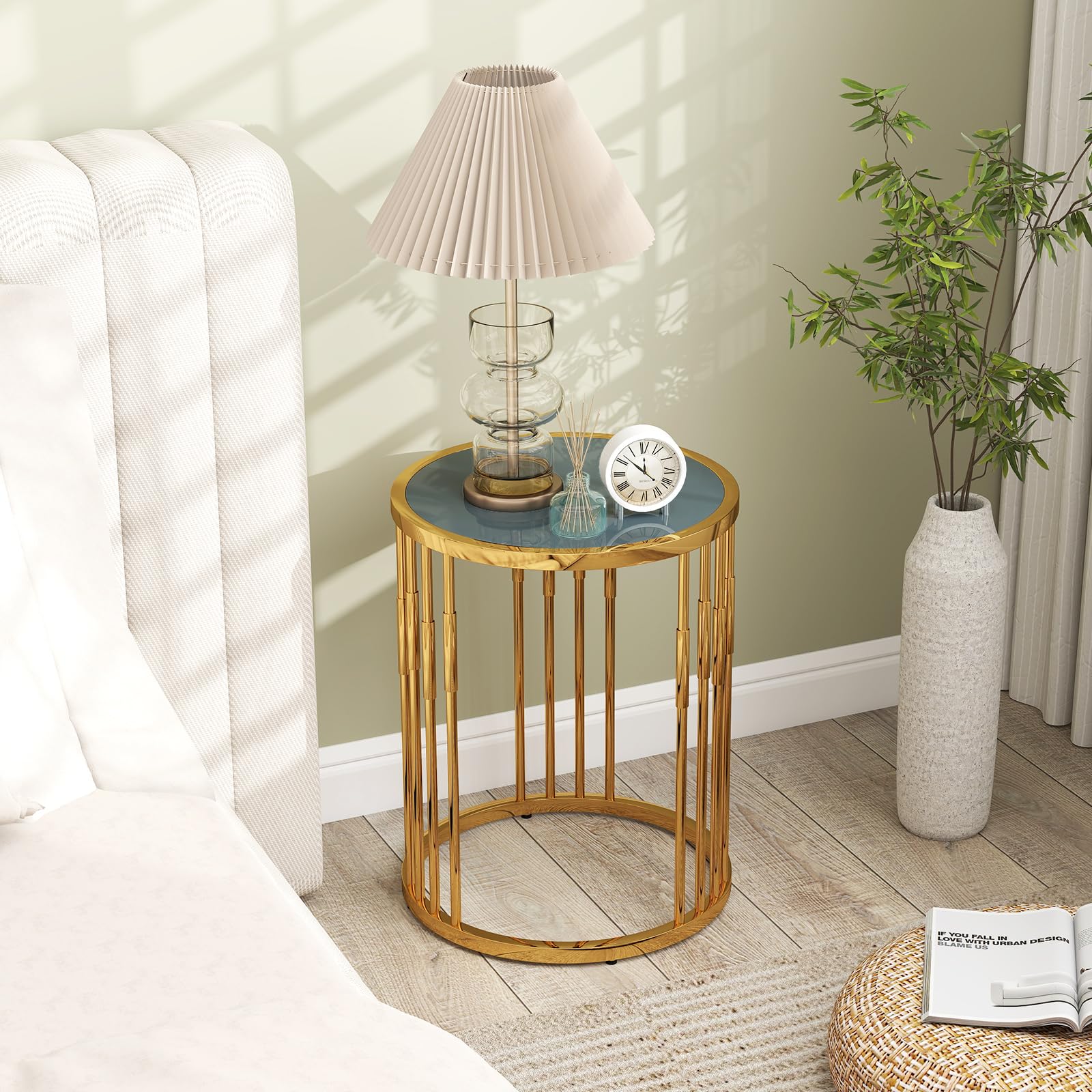 Spacious Tabletop: With the diameter of 40 cm, this round side table offers ample space to display vases, books, cups, and photo albums while remaining easy to clean. Perfect for keeping your essentials at hand during reading or relaxing.