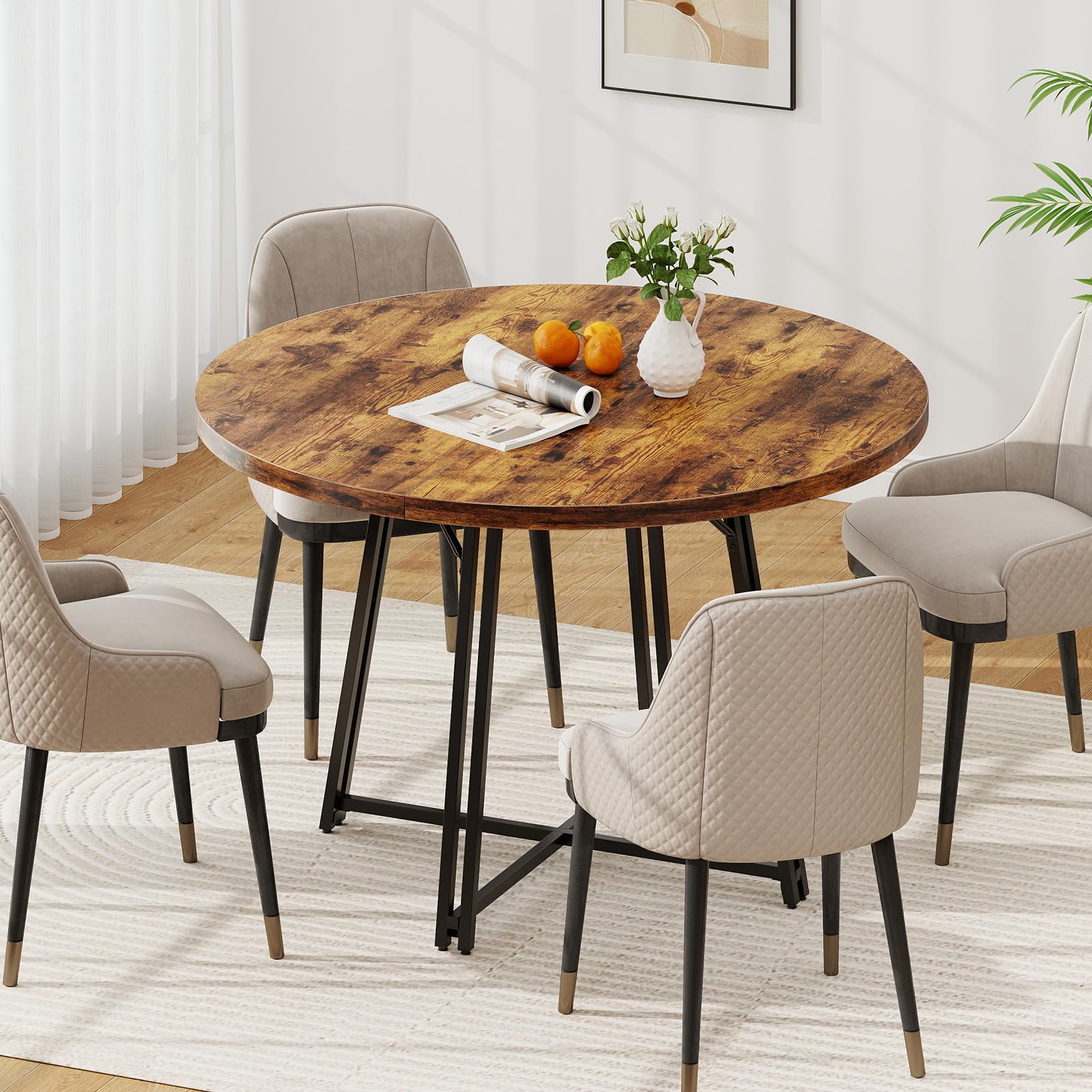 Family-friendly Option: The circular table boasts a generous diameter of 118 cm, comfortably accommodates 4-6 people. The round design enhances conversational engagement, making your family dinner or casual afternoon tea enjoyable.