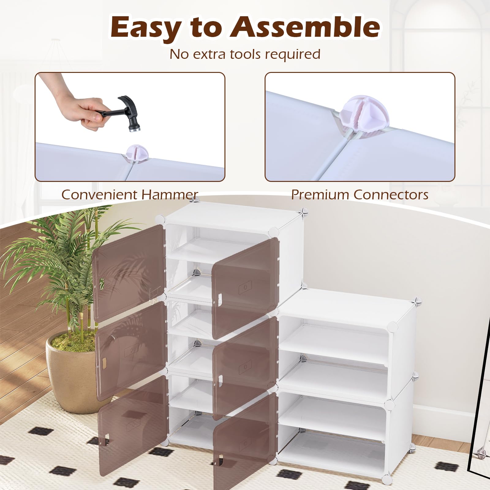 Expandable Installation: The plastic shoe organizer comes with a hammer for quick assembly. Its expandable design allows you to increase storage space as needed, ensuring that you can efficiently organize your growing collection of shoes.