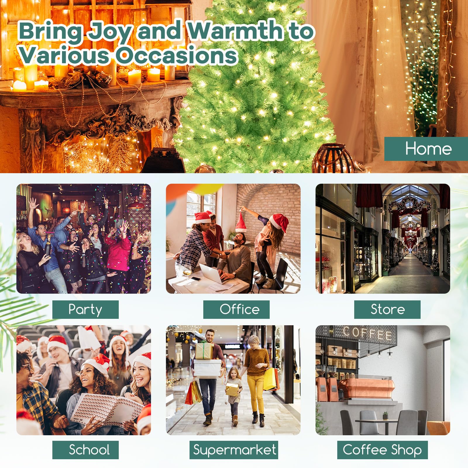 Multi-Scene Marvel: The Christmas tree is the epitome of versatility, dressing up living rooms, enhancing office parties, and brightening commercial spaces with its festive charm. It is the perfect centerpiece that delivers a bundle of warm wishes.