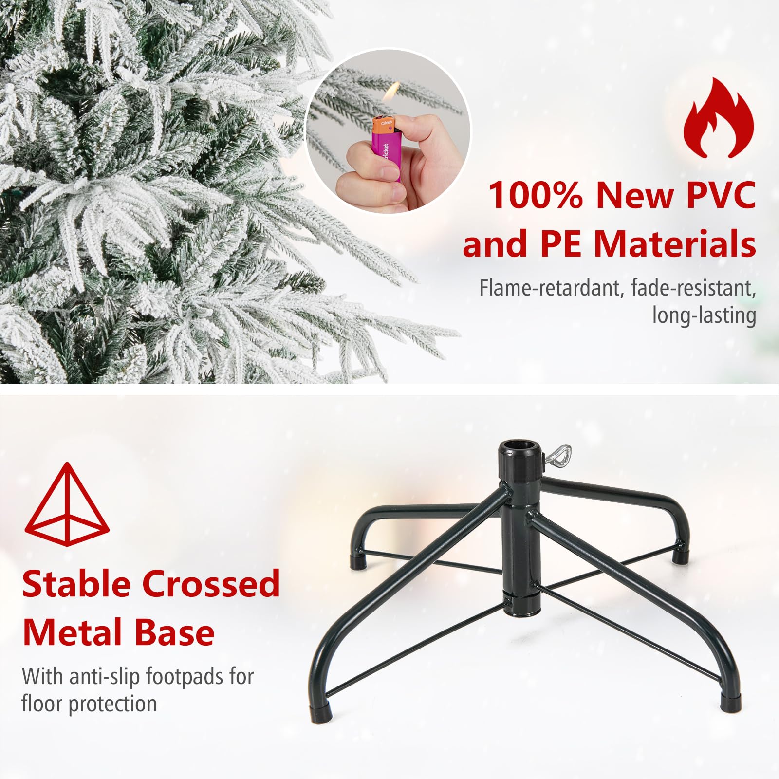 6 FT Artificial Christmas Tree Flocked Xmas Tree with 250 Warm White LED Lights and Folding Metal Stand