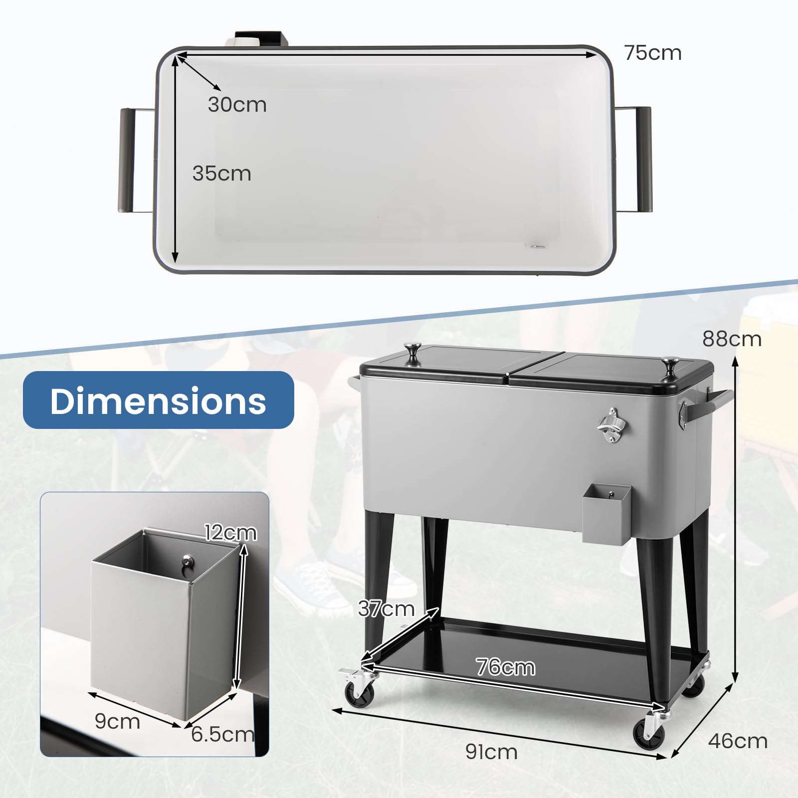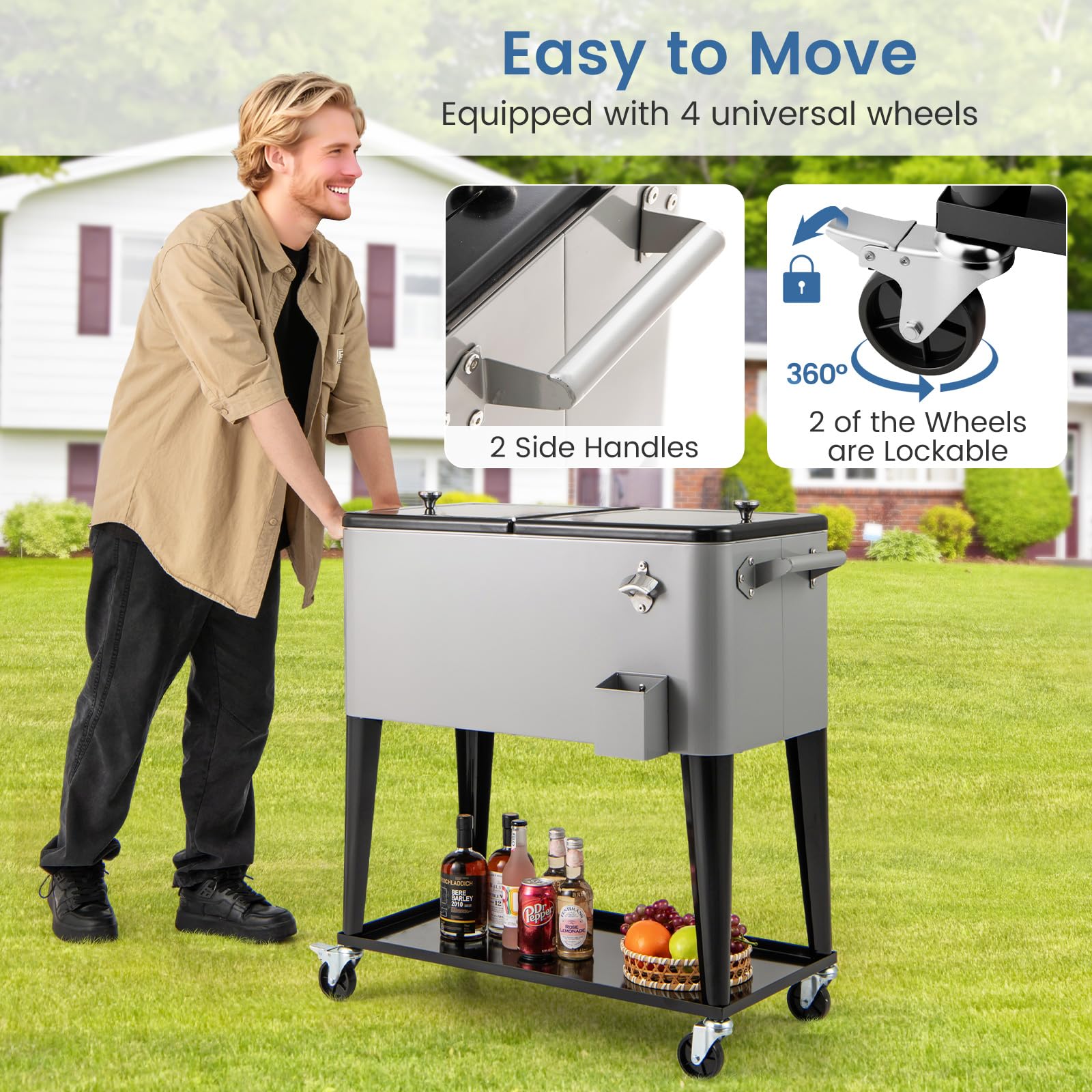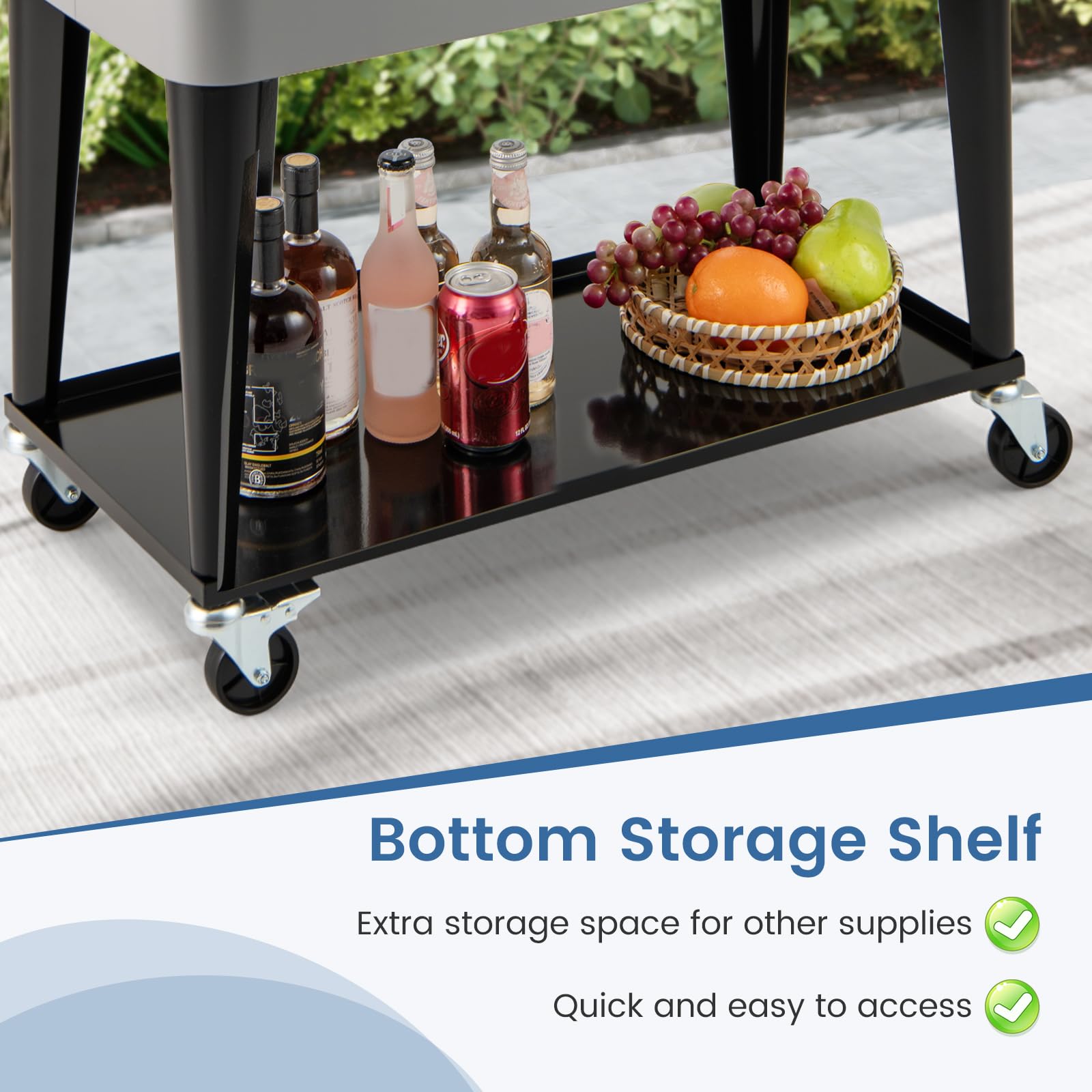 Added Bottom Shelf: Not just for cooling beverages, this patio drink cooler cart boasts a convenient bottom storage shelf. It provides extra storage space for other supplies while making it quick and easy to access what you need.