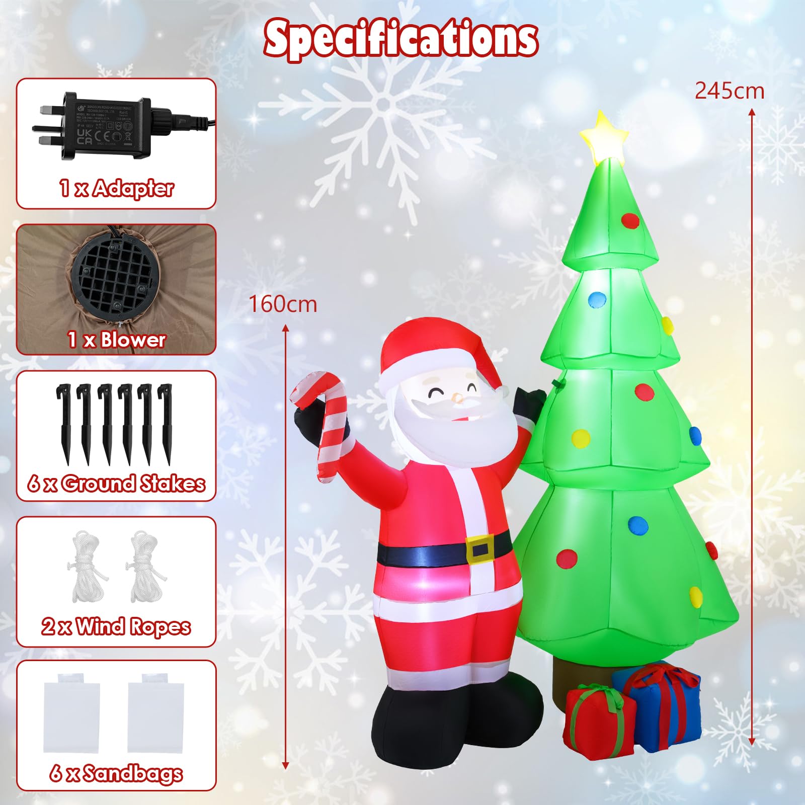 Perfect Christmas Decoration: This inflatable decoration includes a 160cm kind Santa Claus as well as an 245cm Christmas tree with a glowing top star and cute gift boxes at the base. It is the perfect addition to your Christmas celebration, filling your space with festive spirit.