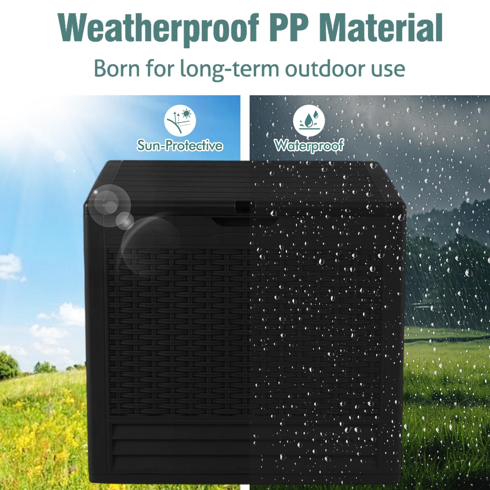 Crafted from weatherproof PP, the deck box is perfect for safely storing everything from garden tools to pool supplies. The lock compatible lid safeguards your belongings, while the appealing rattan texture enhances your outdoor ambiance. Adding more to its versatility, the storage box doubles as a side table or extra seating. Assembly is a breeze with no tools needed, and the built-in handles ensure easy mobility. Make your outdoor space tidy and stylish with this multifunctional storage solution.