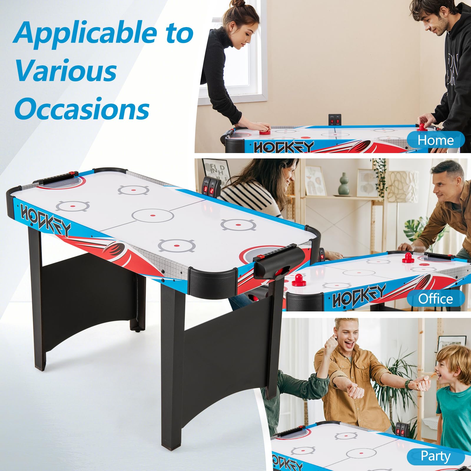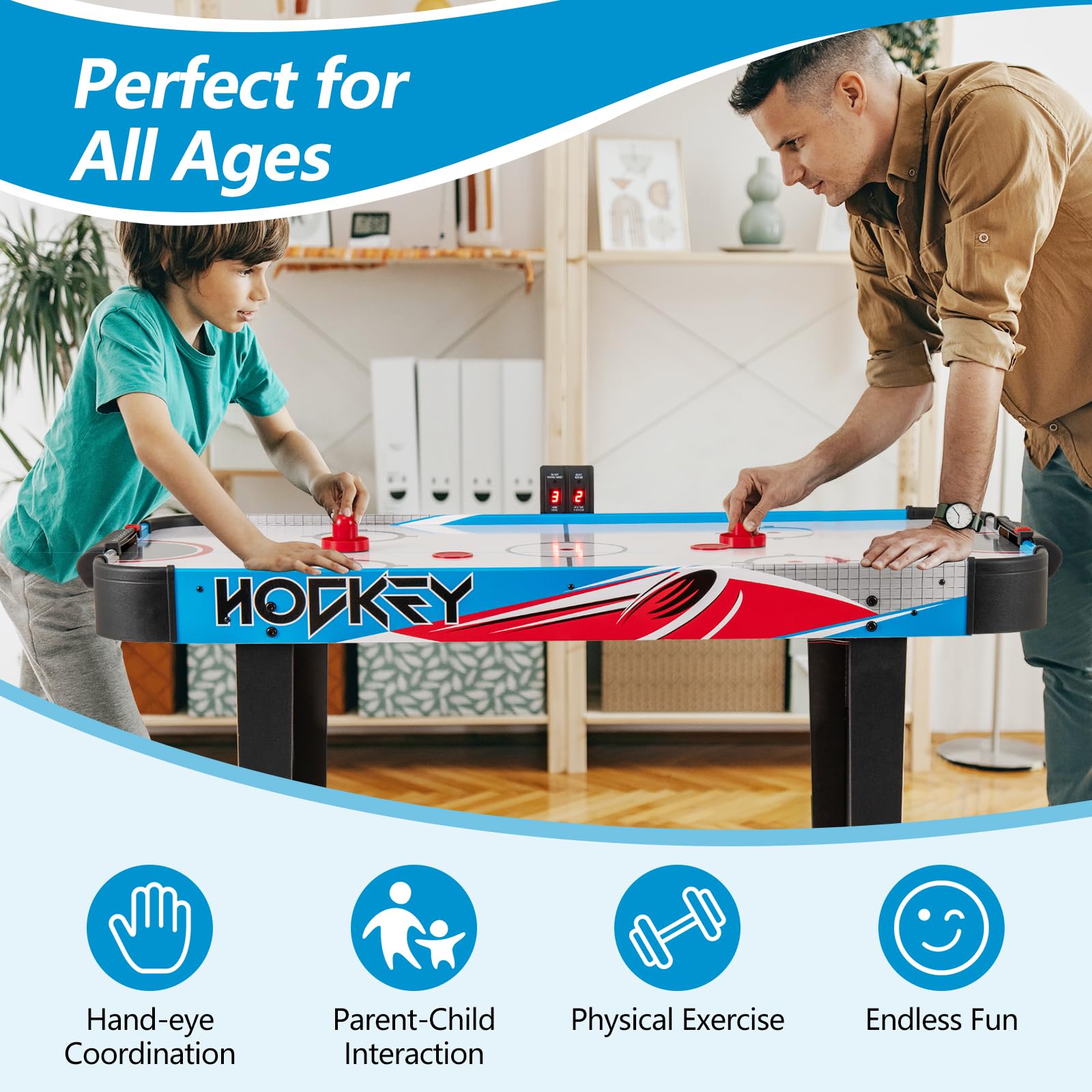 Perfect for All Ages: This sleek and versatile air hockey table is an ideal choice for any game room, party, or office. Suitable for players over 3 years old, it fosters fun, hand-eye coordination, parent-child interaction and physical exercise.