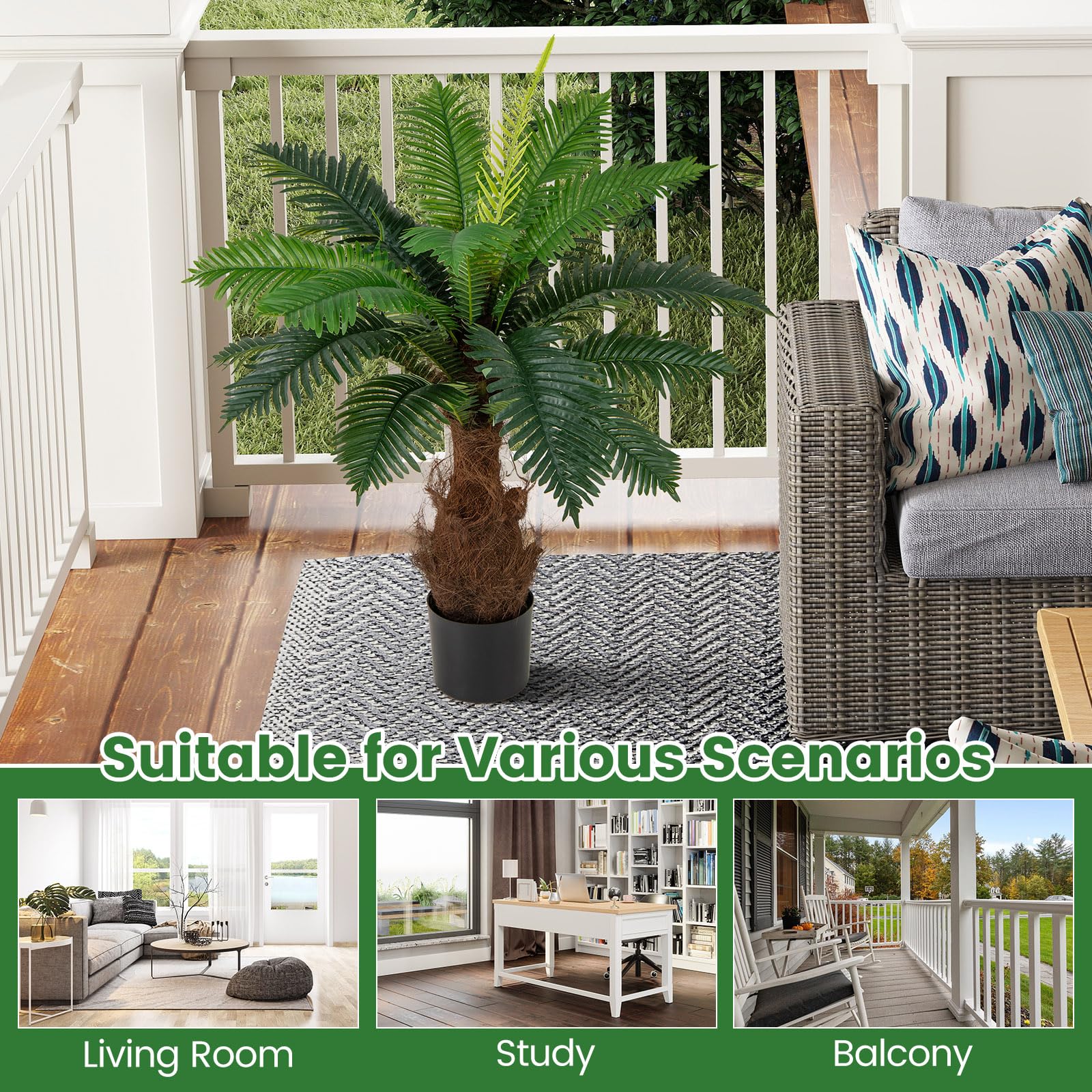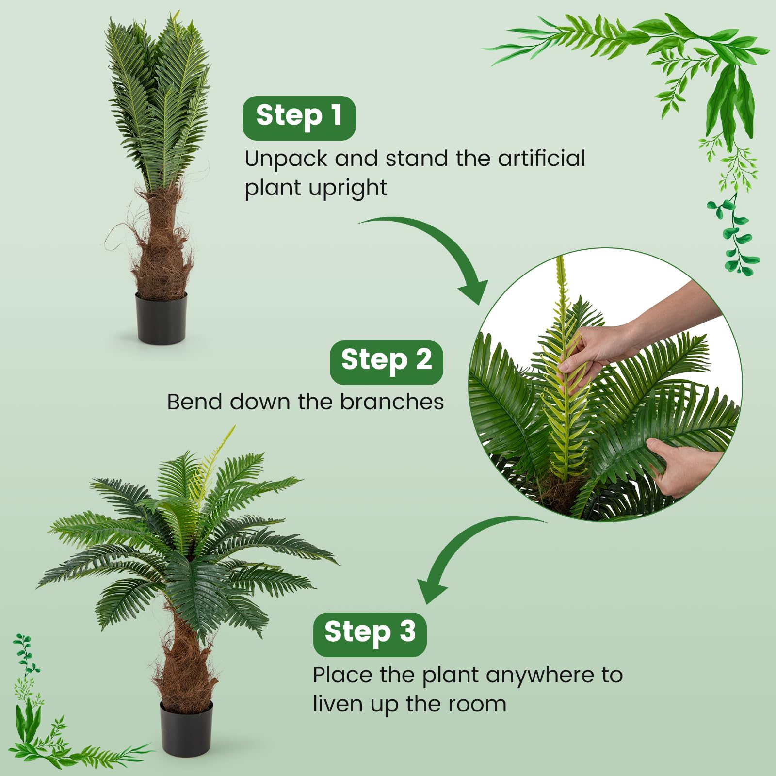Premium Fake Cycas Plant: This fake Cycas plant features selected PEVA leaves that are both fade-resistant and tear-resistant. Plus, the sturdy cement-filled pot ensures stability, preventing the tree from being easily knocked over.