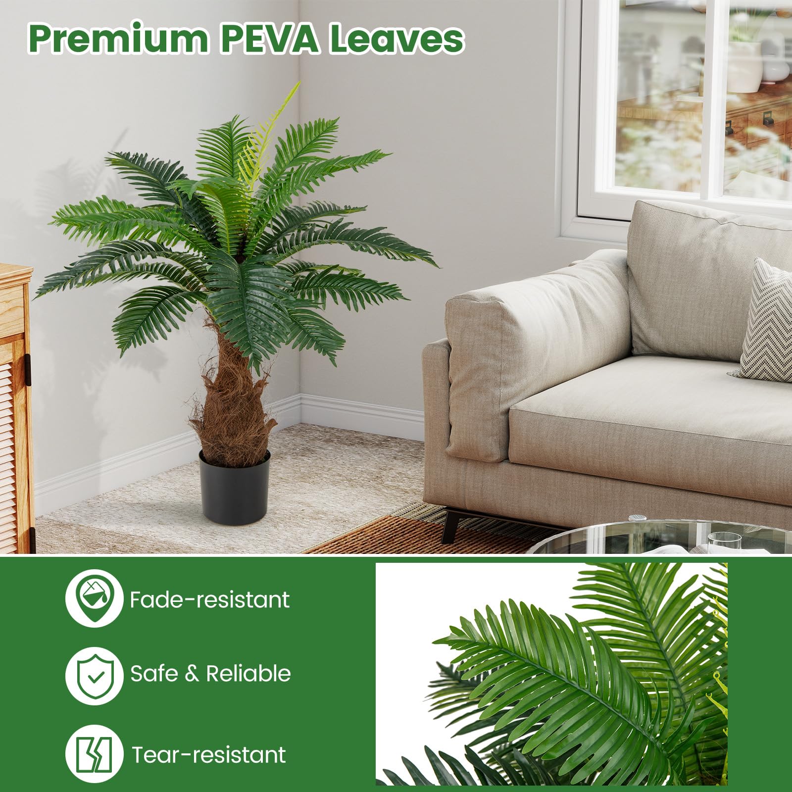 Are you looking for a maintenance-free way to bring lush, tropical charm into any indoor space? This premium 106 cm artificial Cycas palm arrives fully assembled—just bend the 19 fade- and tear-resistant PEVA leaves to your liking and enjoy instant, evergreen elegance. Besides, nestled in a sturdy cement-filled pot for no-tip stability, its lifelike textures, vibrant hues and palm-fiber-wrapped trunk look remarkably real without ever needing water, sunlight or pruning. Perfect for living rooms, studies, porches, offices, shops or special events, this faux tree keeps its fresh appearance all year round.