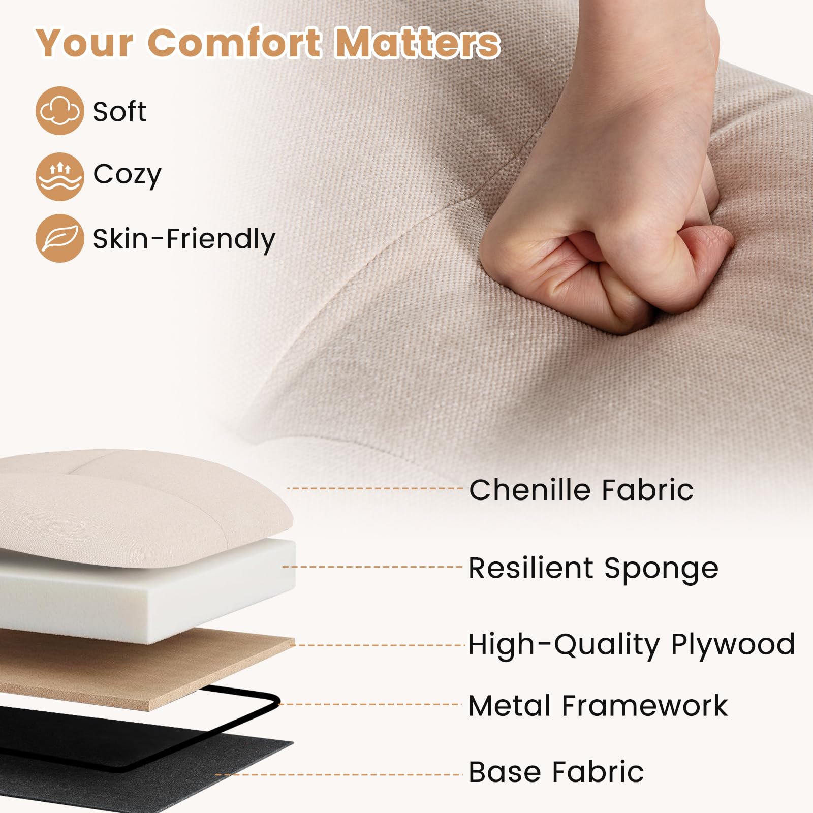 Thickened Seat Cushions: These swivel bar stools boast soft seat cushions with a 5-layer construction, including base fabric, metal framework, plywood support, sponge filling and chenille upholstery. Even for long sitting sessions, you are able to sink into comfort.