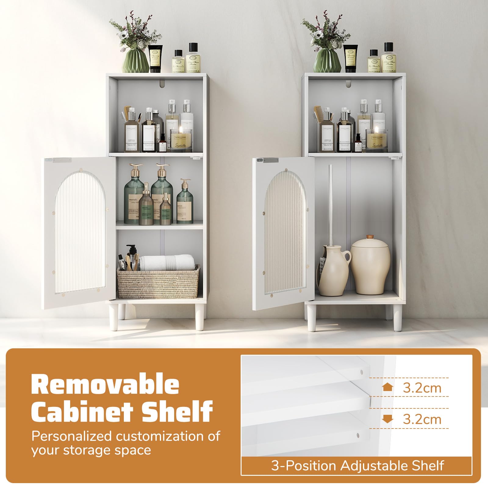With a wide countertop, open compartment, and spacious enclosed cabinet, this bathroom storage cabinet provides multiple bathroom storage options. Its adjustable 3-position shelf system allows for custom storage needs. It will be easier for you to neatly organize your skincare products, body wash, shampoo, towels, toilet paper, hair dryer, and more. The sturdy, enduring storage organizer supports up to 80kg and comes with an anti-tipping kit and solid wood legs for stability. Moreover, the tempered glass door is delicate and easy to maintain. Carefully painted and standing 10cm off the ground, the slim bathroom storage unit is a perfect fit for bathrooms.