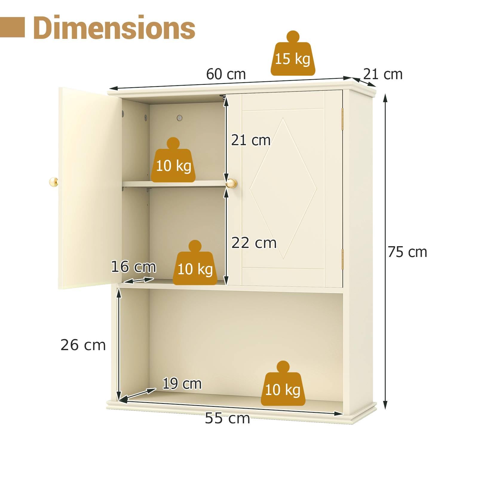 Open Shelf Dimensions: 55 cm x 19 cm x 26 cm (L x W x H)