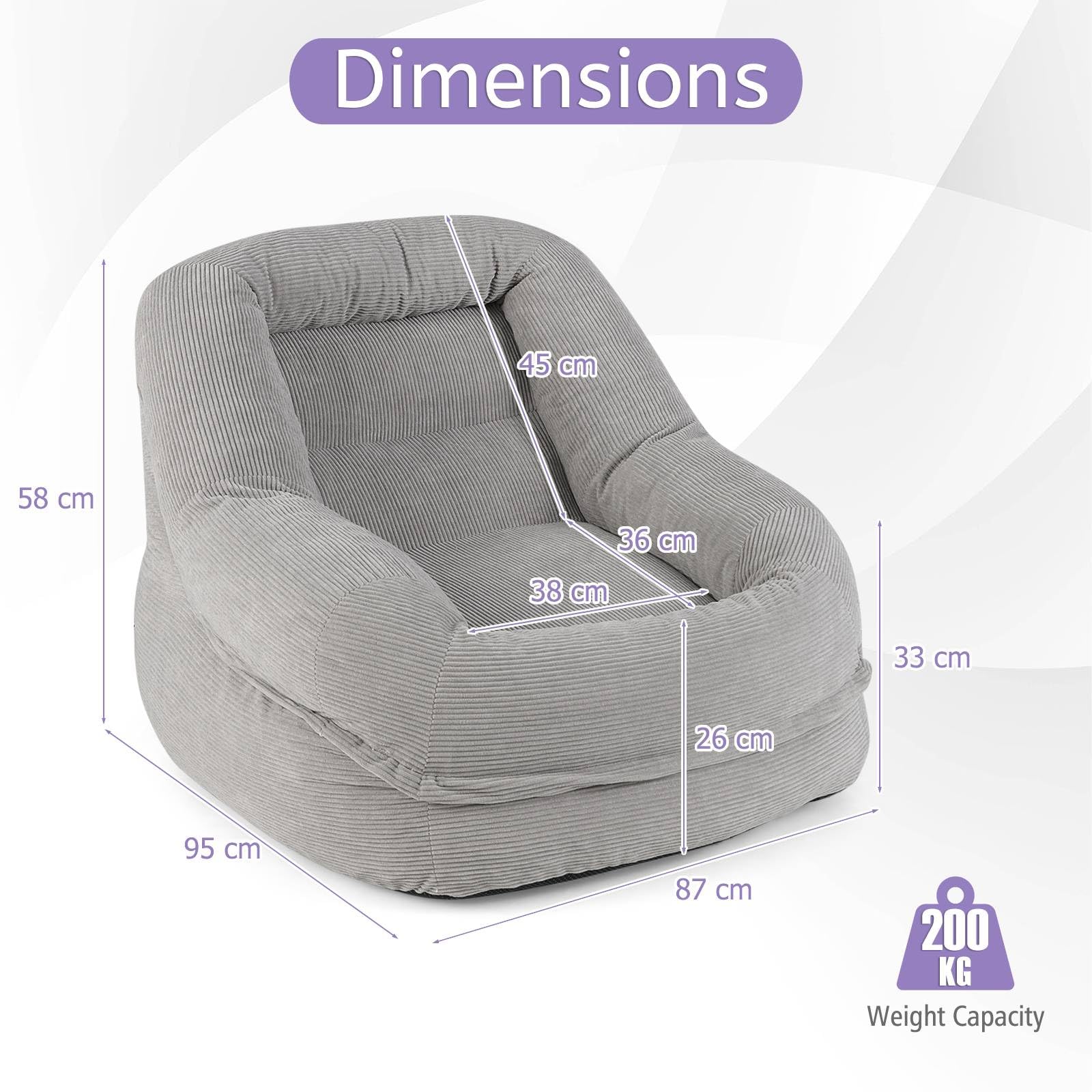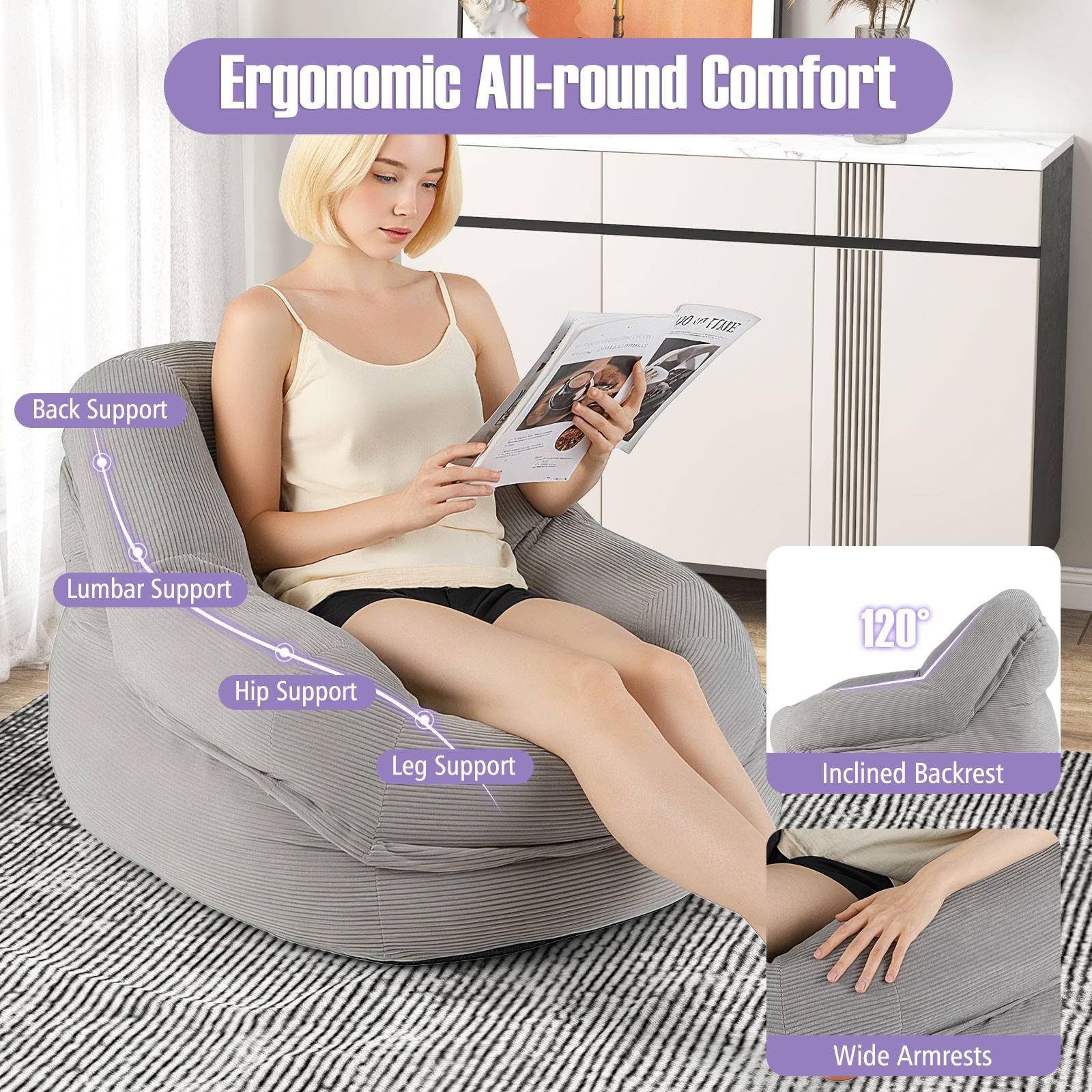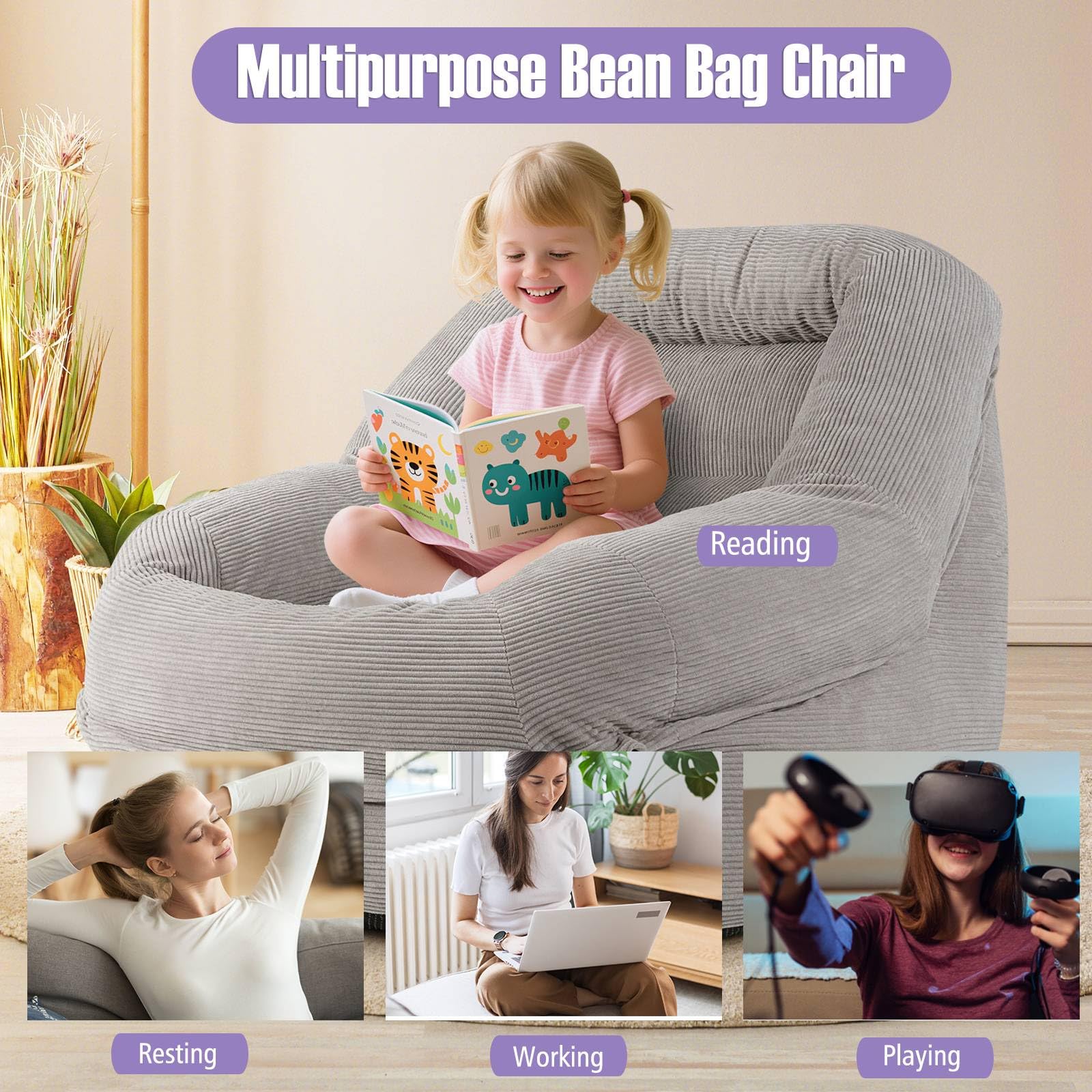 Premium Materials: This bean bag chair features a soft, skin-friendly and breathable stripe corduroy cover. In addition, the high-density sponge filling offers comfortable and long-lasting support.