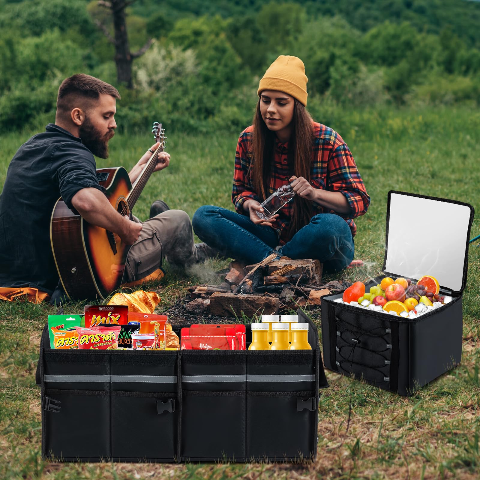 Cooler Bag Included: This car trunk organizer comes with a 20 L leakproof and insulated cooler bag featuring waterproof PVC coating. The ice bag is functional to keep drinks icy on summer road trips and meals warm on winter commutes.