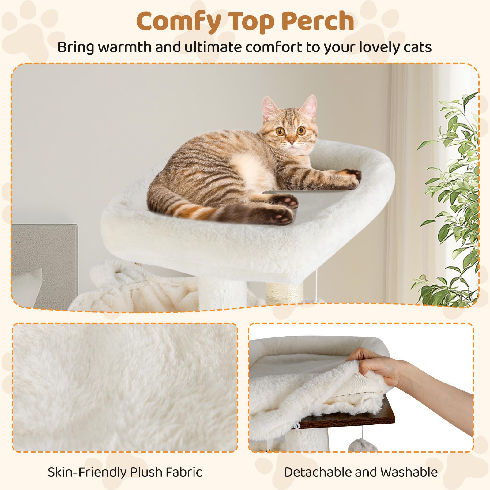 Embrace a Clean and Organized Living Environment with Our Stylish Cat Furniture! Our innovative 3-in-1 cat furniture serves not only as a comprehensive play and rest area for your cat, complete with a luxurious top perch, dual-style baskets, and a spacious cat condo, but it also cleverly conceals a litter box. The natural sisal scratching posts and a playful dangling ball cater to your cat’s adventurous and playful nature while helping to keep their claws healthy and your furniture safe. Each level is adorned with removable, washable soft padded cushions covered in a skin-friendly plush fabric, offering ultimate comfort. Simplify your life while providing endless fun and a safe haven for your feline friend with this multifunctional cat tree.