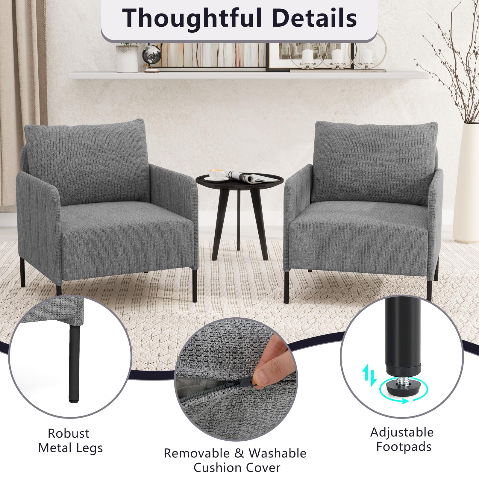 Robust Structure: The single seat sofa features 4 supportive built-in sofa springs, providing flexibility and a loading capacity of 150 kg. Equipped with robust metal legs and adjustable foot pads, the sofa easily maintains its balance on uneven floors.