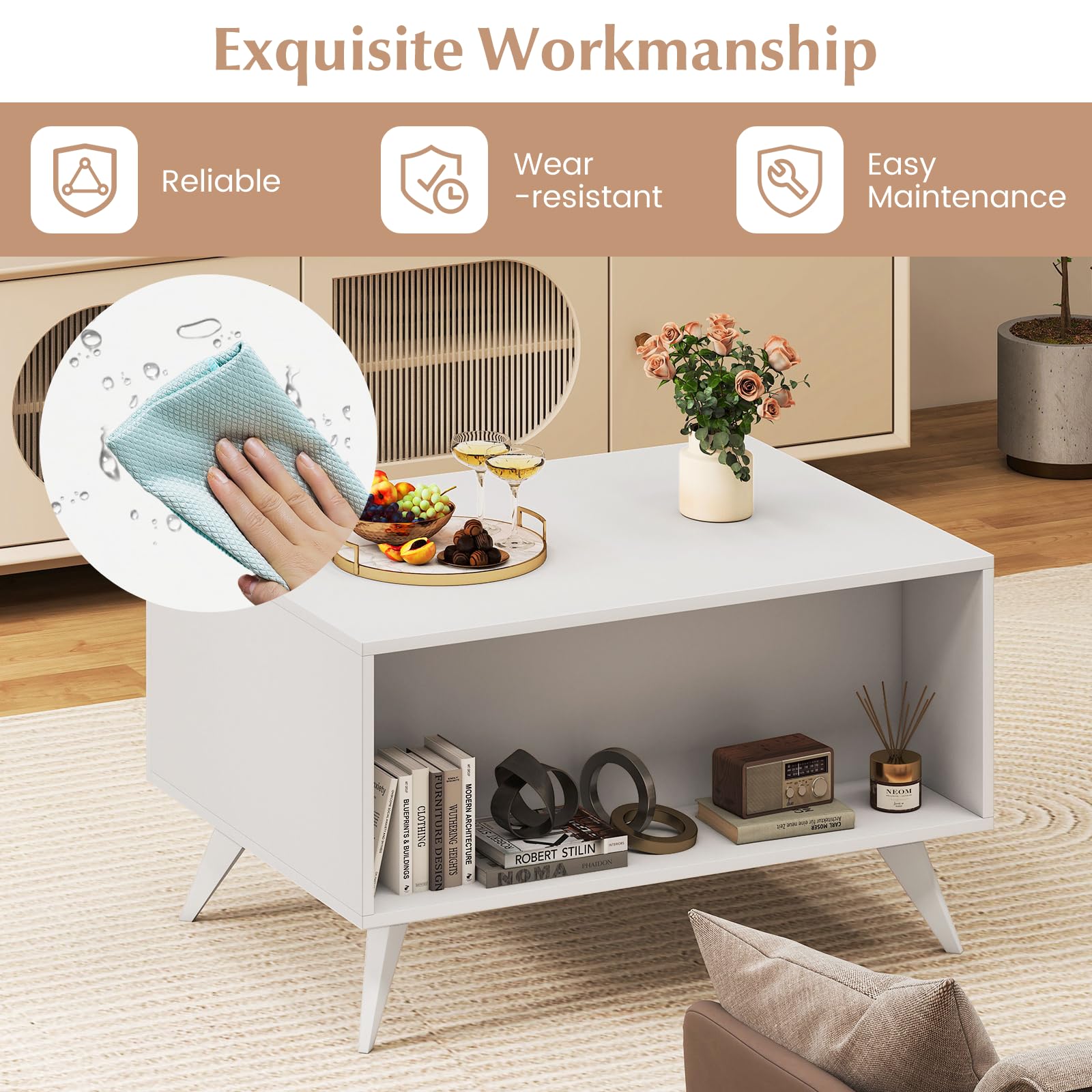 Coffee Table, Wooden Cocktail Table Sofa Side Snack Tables with 3 Doors and Back Open Shelf