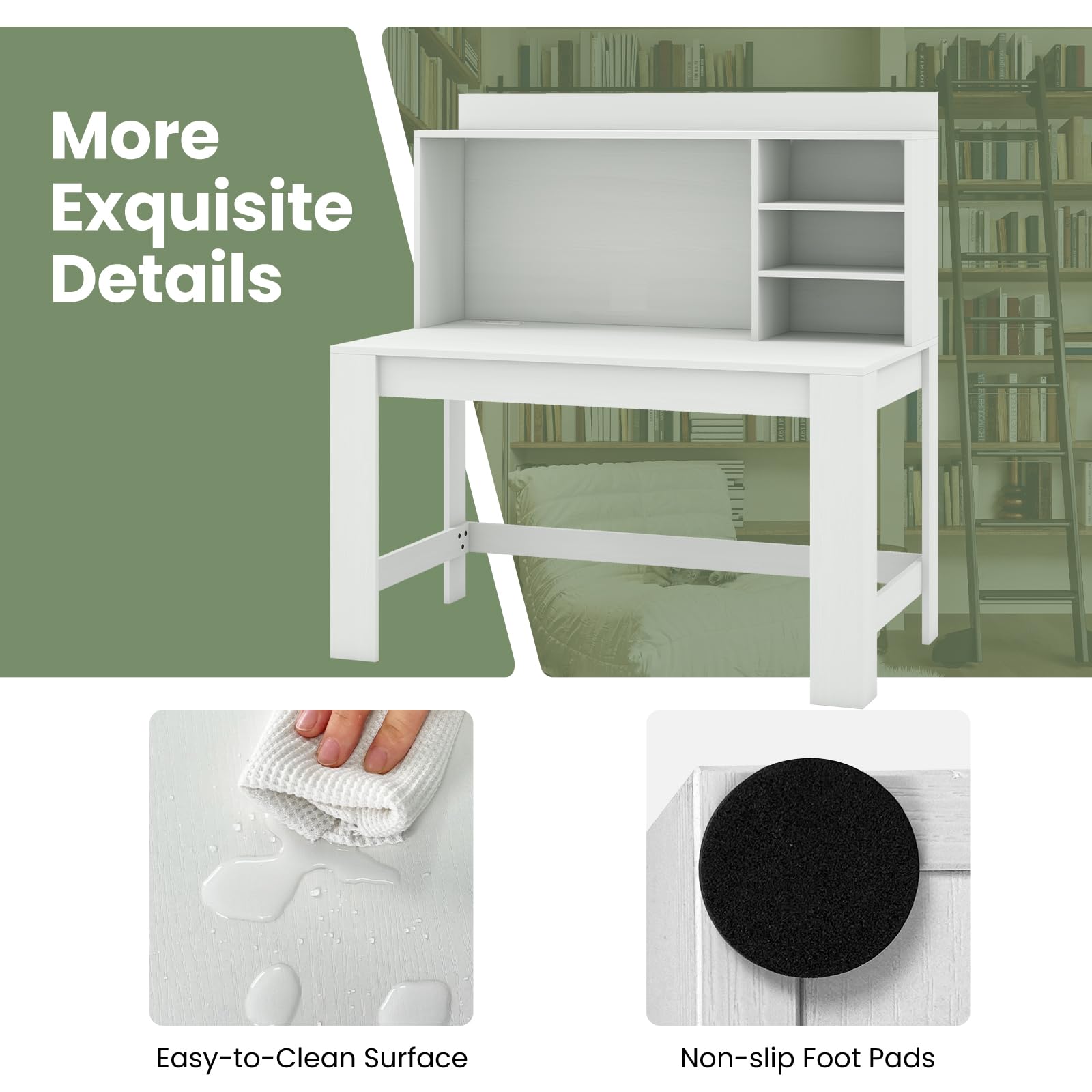 More Exquisite Details: This office desk with hutch comes with non-slip foot pads for added stability, while the easy-to-clean surface saves your time and energy for maintenance. The overall dimensions are: 118 x 60 x 125 cm (L x W x H)