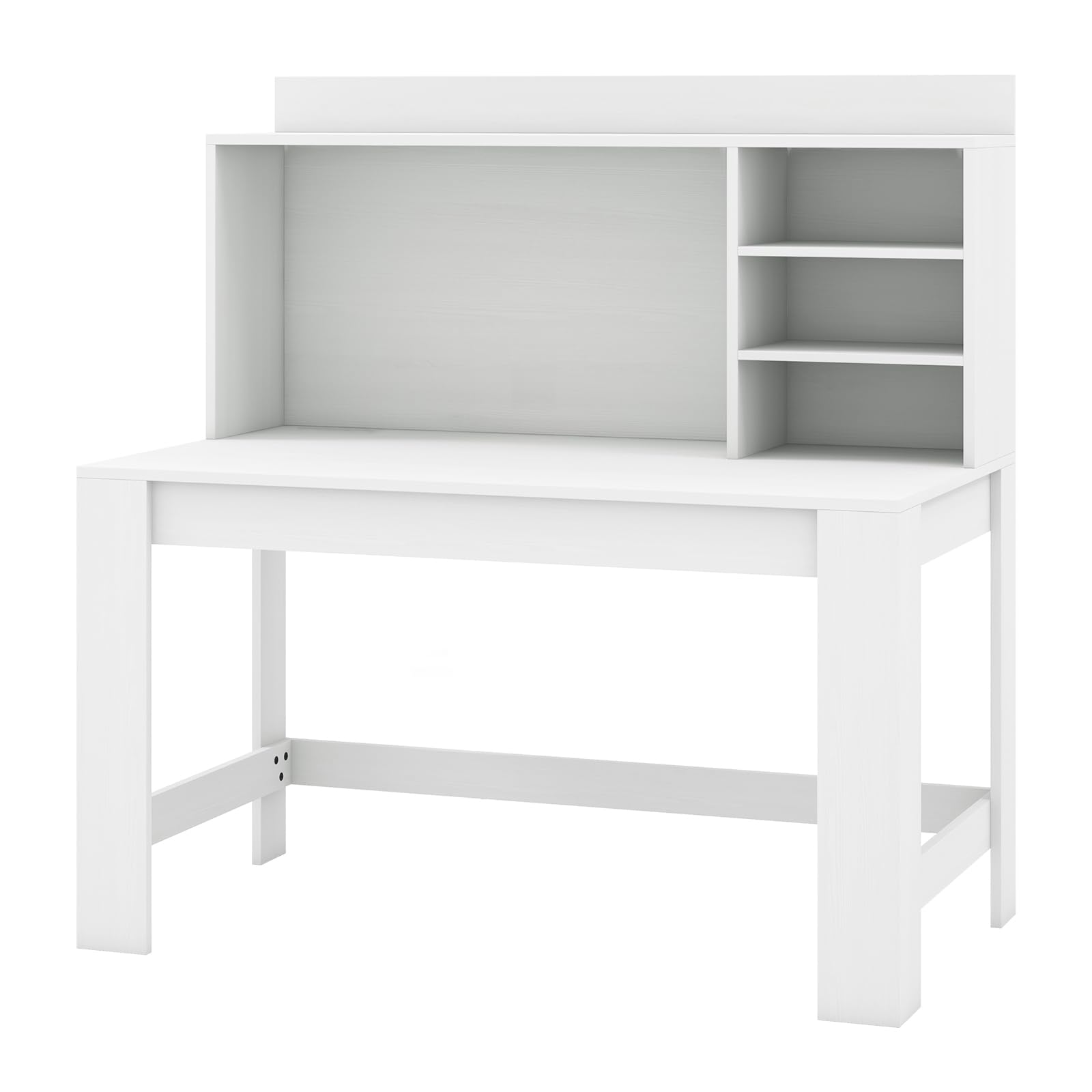 Large Storage Space: This white desk features a 118 cm wide desktop, along with a raised display shelf and 3 storage shelves, which offers ample room for your books, office supplies, plants, documents and decorations. Besides, the 40 cm height of the desktop compartment is suitable for laptop storage.