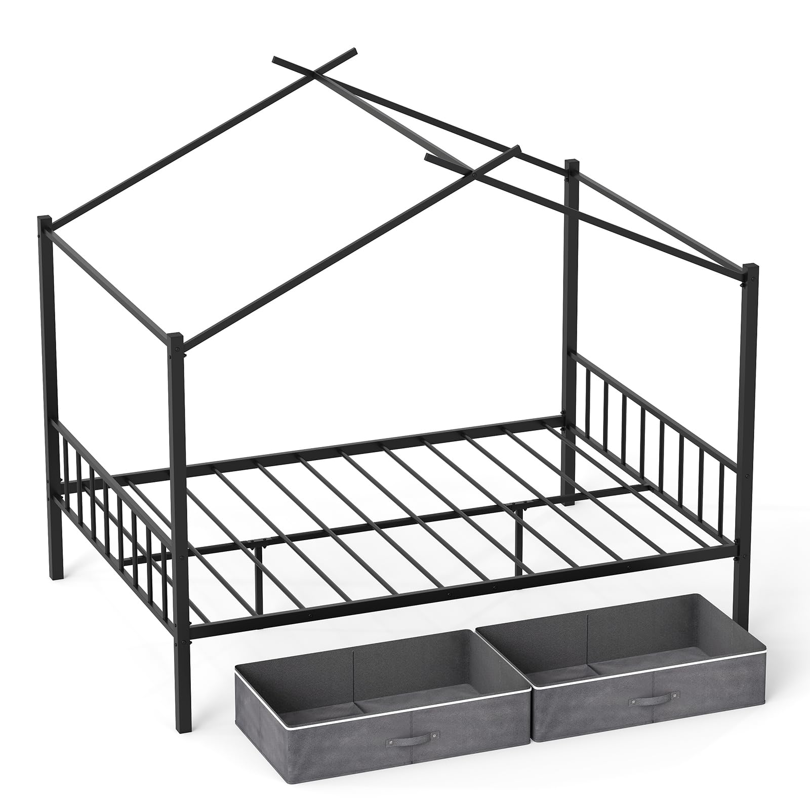 2 Drawers for Storage Convenience: The metal house bed features 2 fabric drawers that neatly tuck away toys, clothes, or bedding, keeping room organized and clutter-free. Besides, the zippered covers shield items, and the drawers can be folded when not in use.