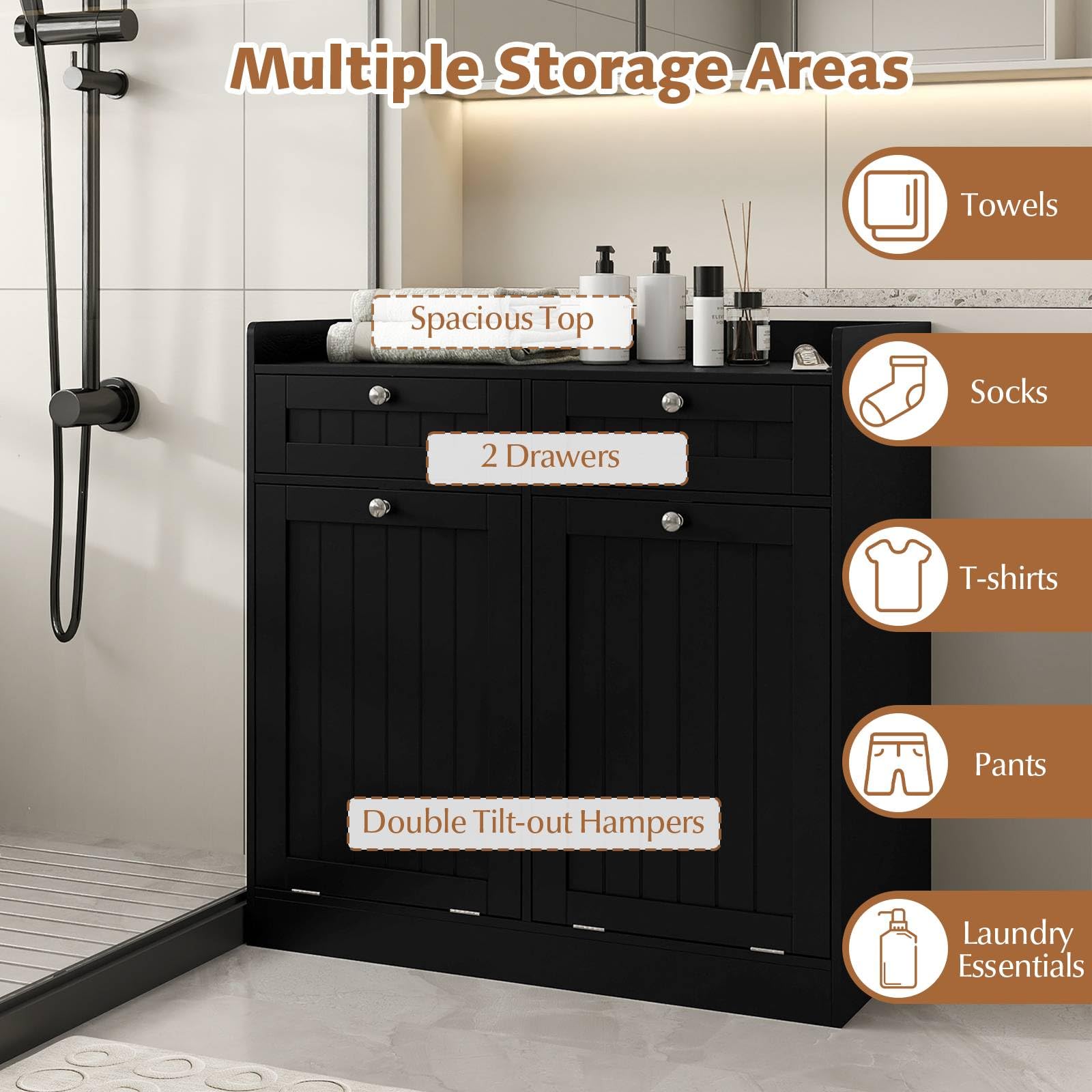 Pre-sort Your Clothes: The double tilt-out laundry hampers make it easy to pre-sort lights and darks, separate coats from socks, or organize laundry by family member, helping to reduce laundry-day chaos and saving valuable time.