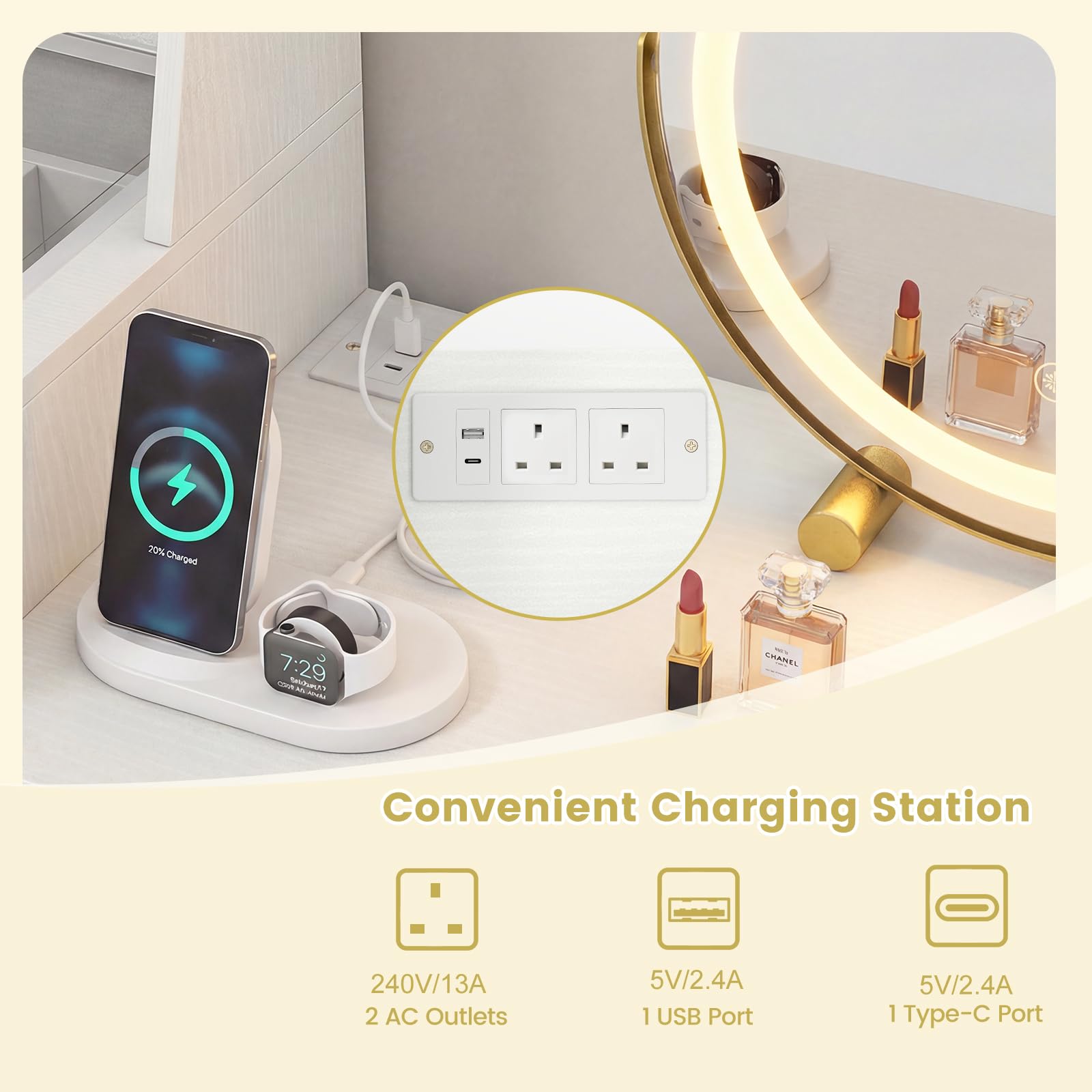 Package Includes: 1 x Dressing Table, 1 x 360° Rotation LED Vanity Mirror, 1 x Stool, 1 x User Guide