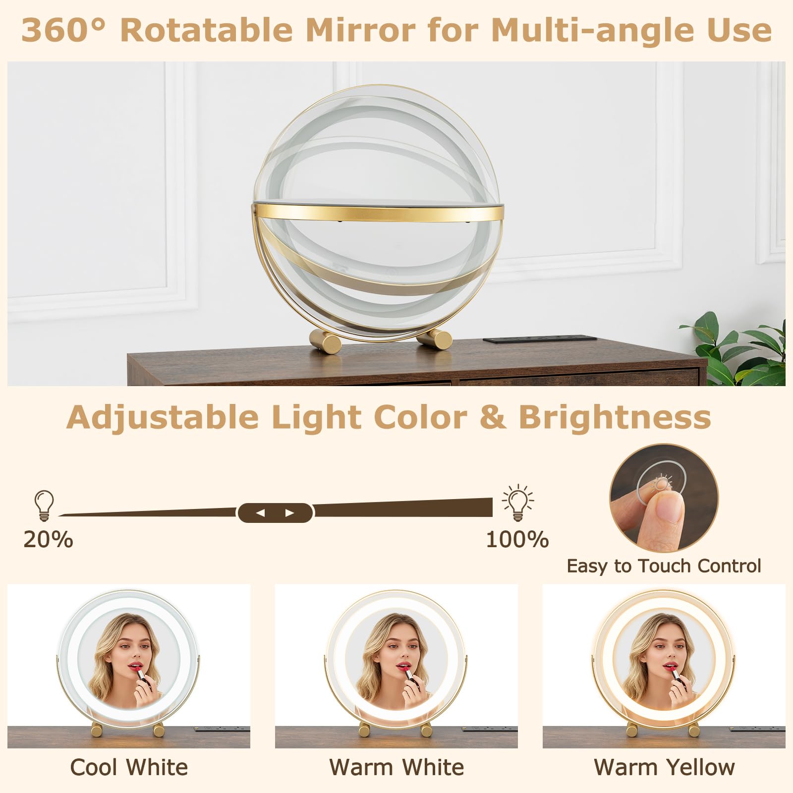 - Easy to adjust the light color and brightness with the touch control
