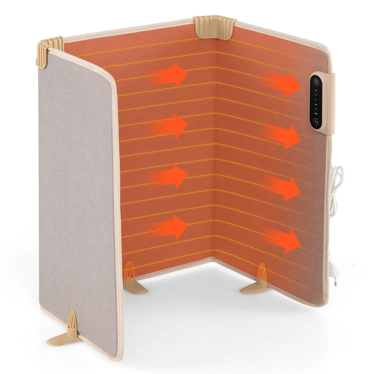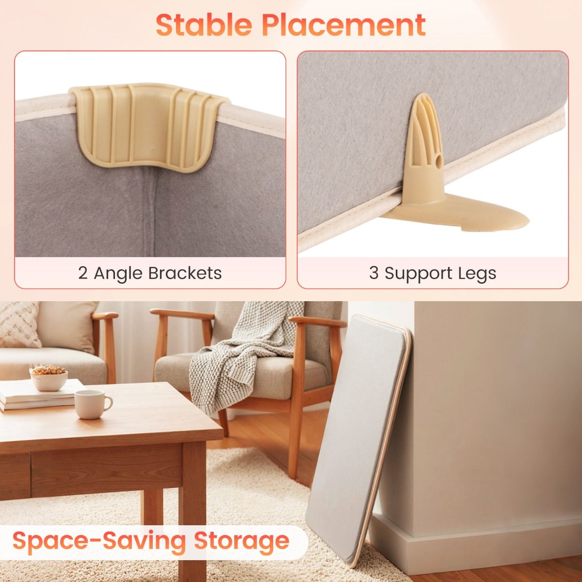 Tri-Fold to Save Space: Equipped with 2 angle brackets and 3 support legs, this portable heating pad stays securely in place. When not in use, the clips can be removed for easy folding and space-saving storage.
