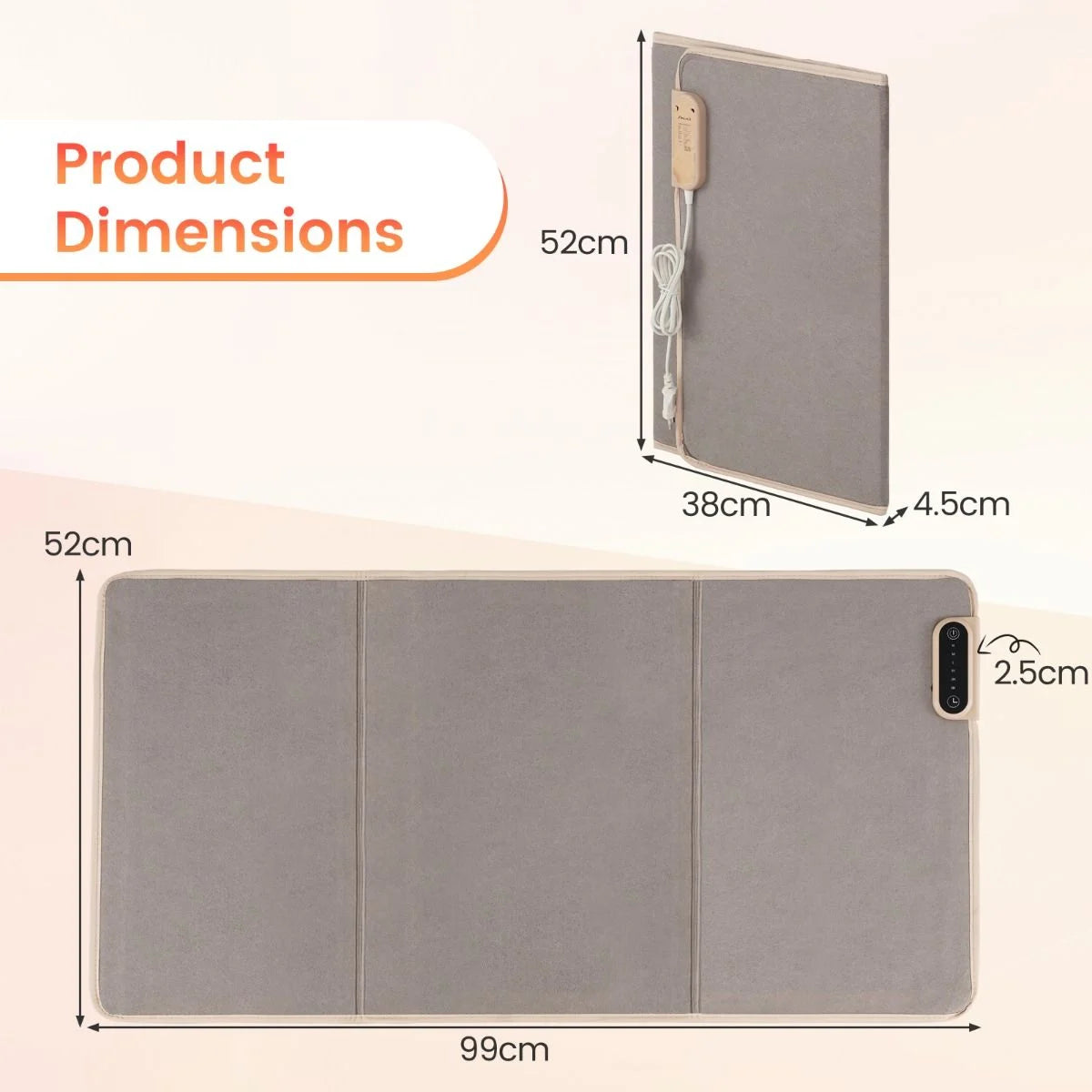 Adjustable Temperature & Timer: Easily control your heating experience with a simple controller featuring 3-level heating: low (50℃), mid (60℃), and high (70℃). Plus, the heating pad also allows you to set the timer for 1, 2, or 4 hours.