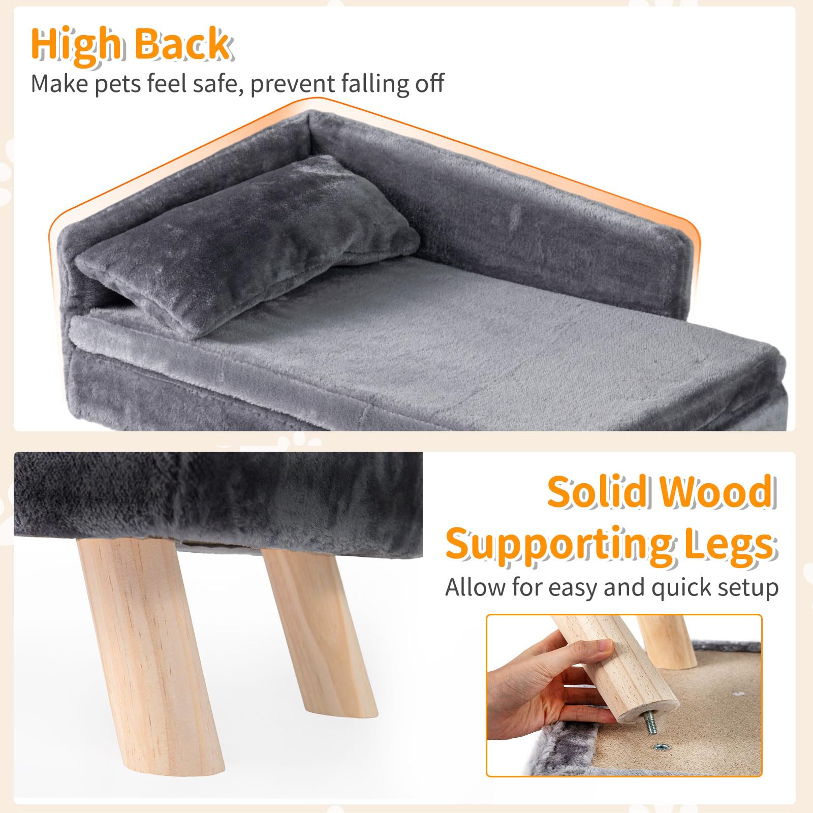 Detachable Design for Easy Maintenance: This pet sofa includes a padded seat cushion and comfy pillow, both removable for hassle-free cleaning. To cater to different seasons, it is recommended to add a cooling pad for summer (not included), ensuring year-round comfort for your pet.