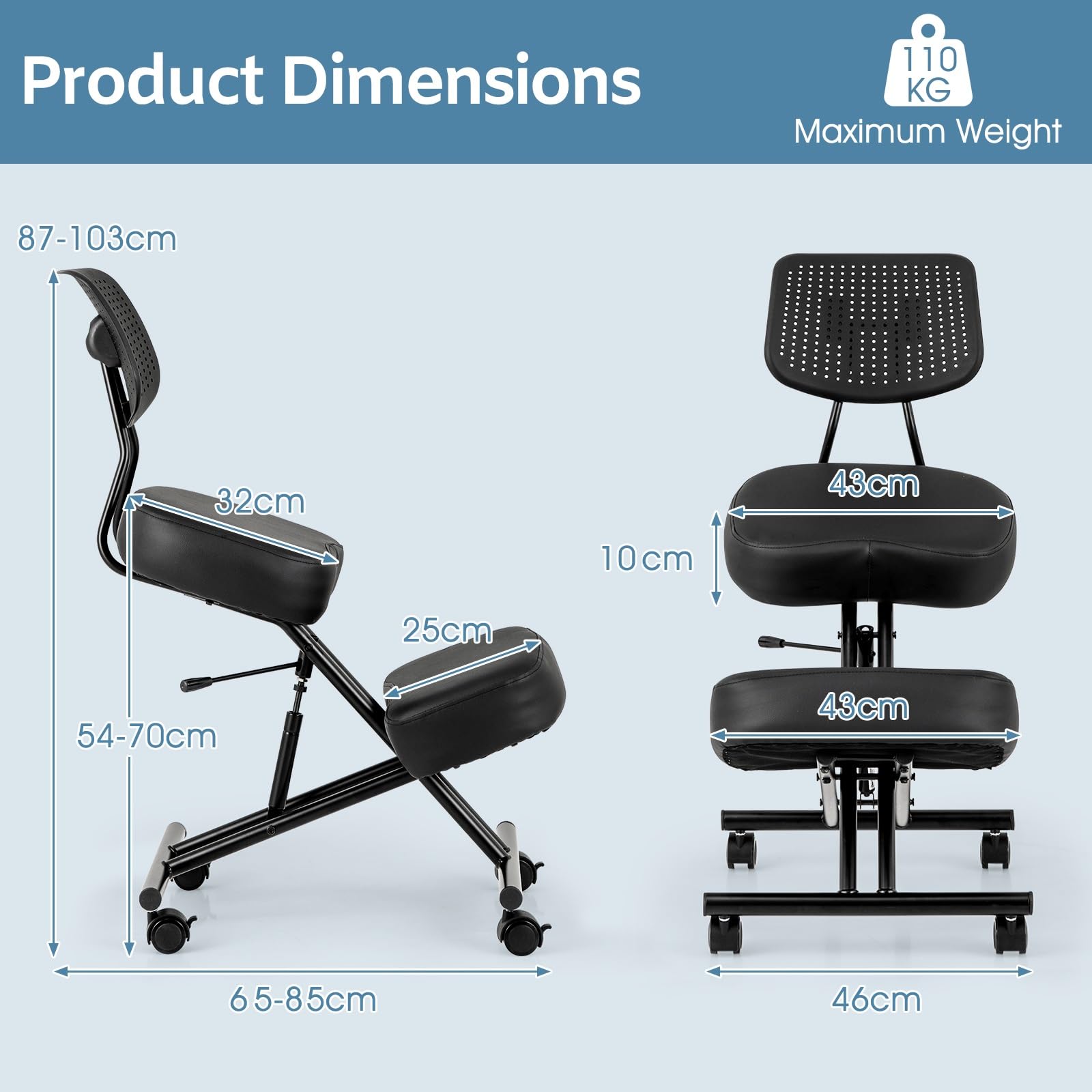 Customizable for Optimal Comfort: The posture chair is equipped with a premium gas spring rods, adjustable from 87 to 103 cm, allowing you to customize it according to your sitting posture.. Plus, the backrest of the ergo kneeling chair is 360 degree rotatable to align with your leaning angle for enhanced comfort.